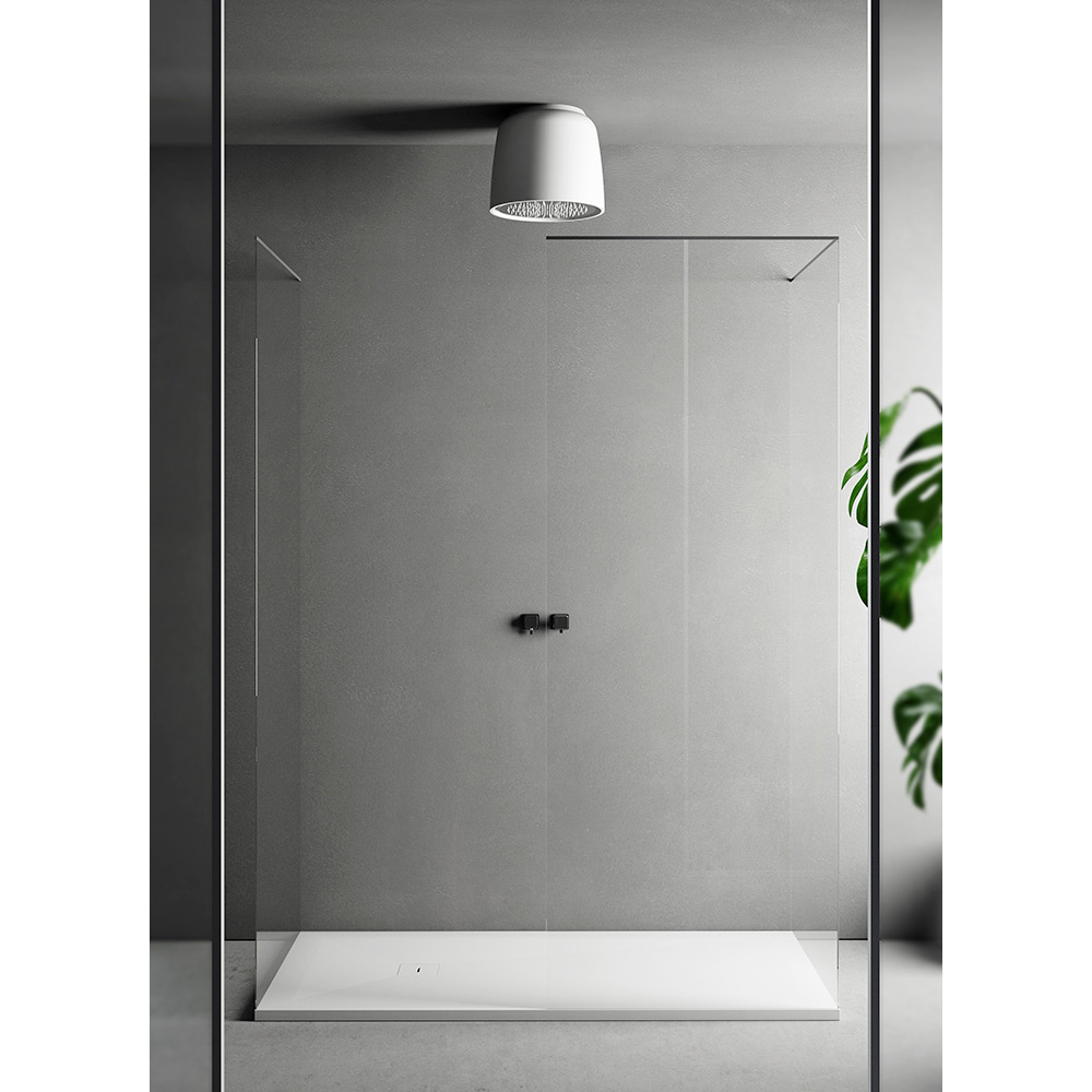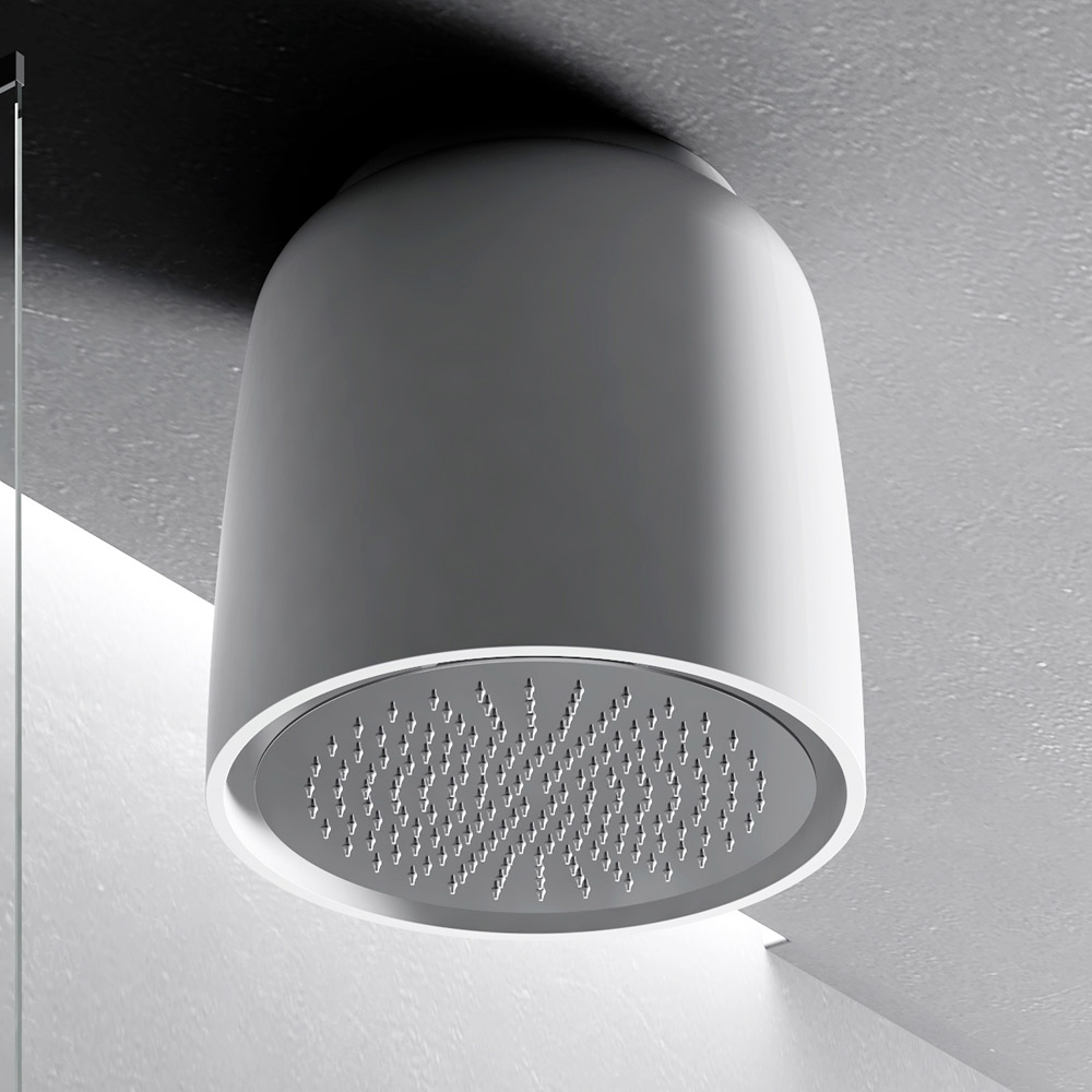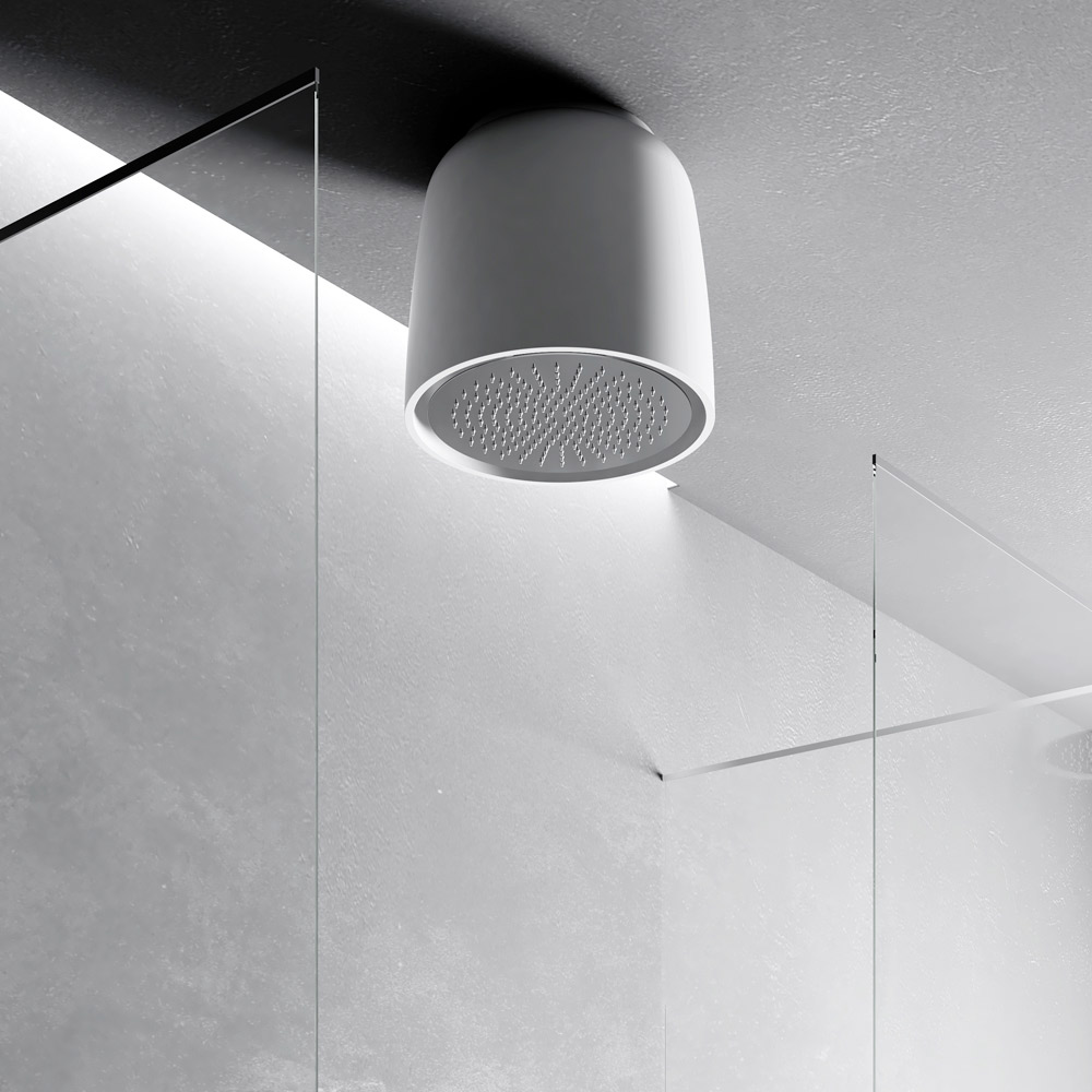 Allround-Duschkopf zur Deckenmontage aus Luxolid-Solid-Surface mit mattweißem Finish, komplett Made in Italy.