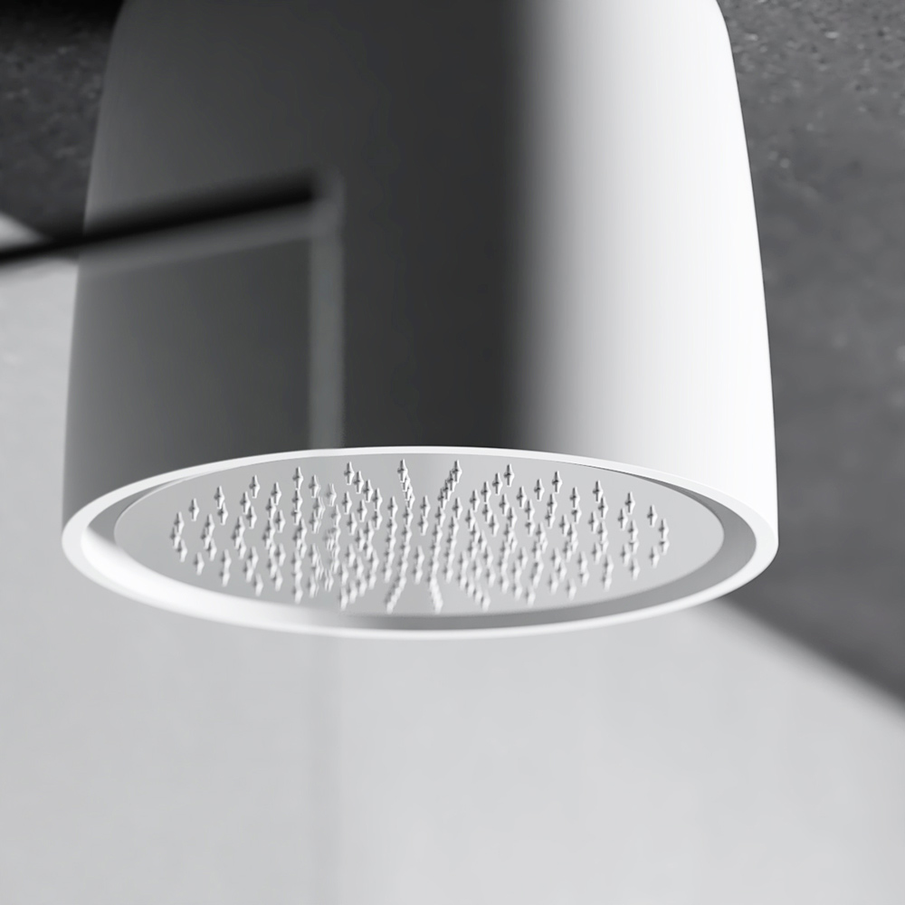 Dieser Duschkopf im minimalistischen Design ist ein Meisterwerk an Funktionalität und modernem Stil . Die mattweiße Oberfläche und die zylindrische Form machen ihn zu einem stilvollen Blickfang in jedem modernen Badezimmer, während die großzügige Sprühöffnung ein angenehmes und entspannendes Duscherlebnis gewährleistet, ähnlich wie bei natürlichem Regen. Die Deckenmontage bietet ein klares und integriertes Erscheinungsbild, das Platz schafft und optische Unordnung reduziert. Jeder Aspekt dieses Duschkopfs wurde mit Blick auf Wohlbefinden und Komfort entworfen und verwandelt das tägliche Baden in ein Erlebnis von Luxus und Entspannung . Er ist die perfekte Ergänzung für alle, die ihre Körperpflegeroutine in einen Moment puren Sinnesgenusses verwandeln möchten.