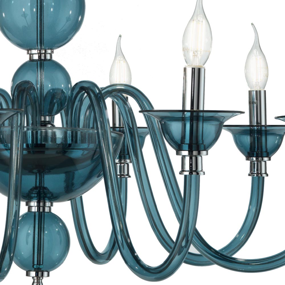 Klassischer 8-Licht-Kronleuchter aus verchromtem Metall und handgefertigtem Glas, Luxus, hergestellt in Italien.