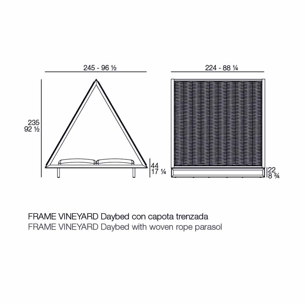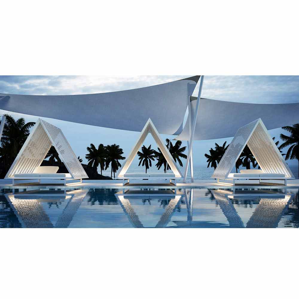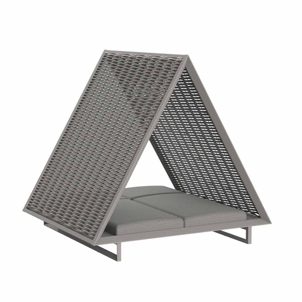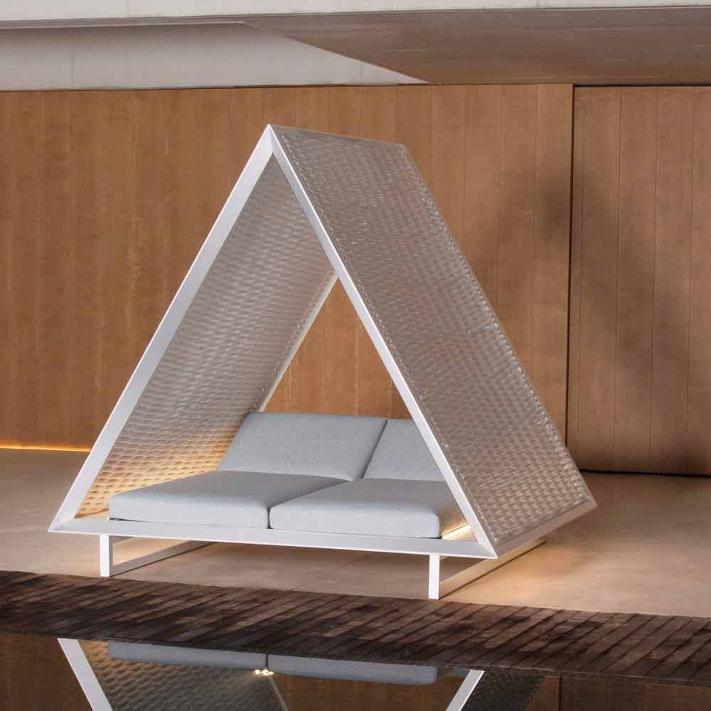 Doppeltes Tagesbett im Freien, luxuriöses und elegantes Design mit Aluminiumstruktur und geflochtenem Seilschirm.