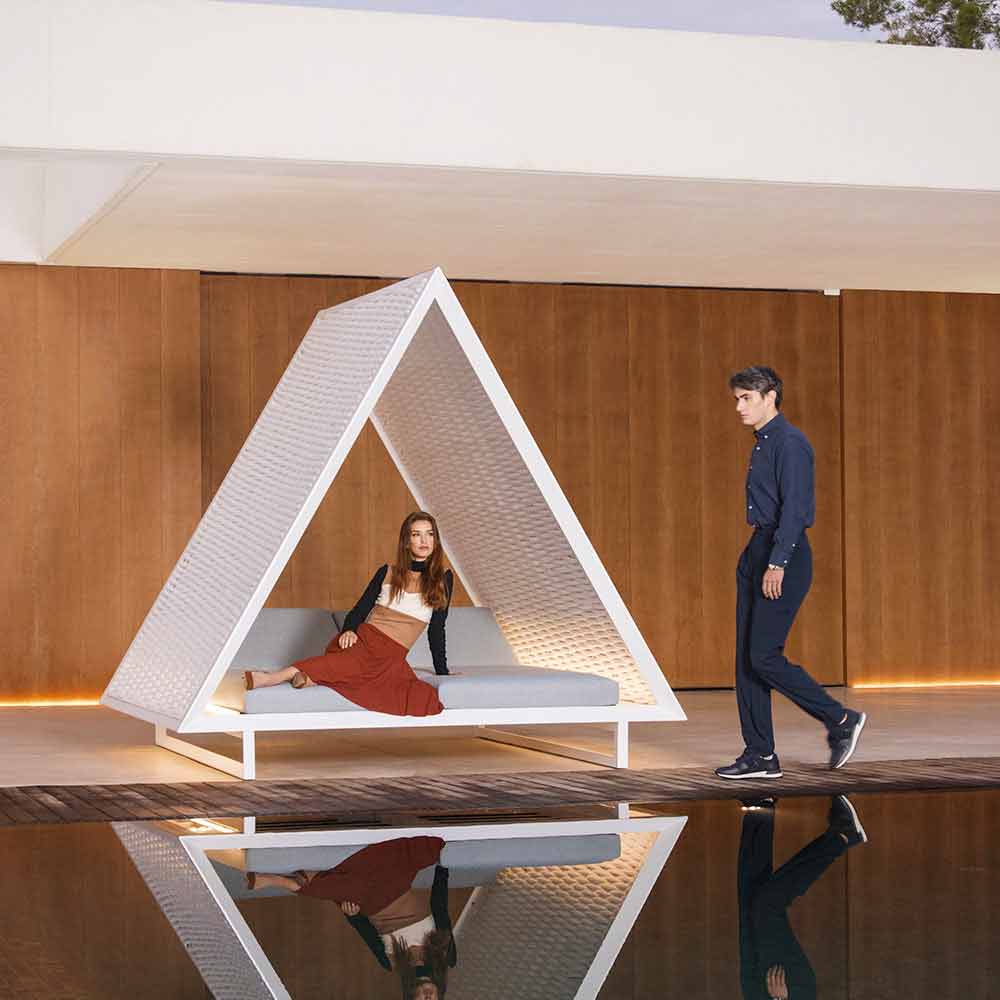 Die reinen und einfachen Linien machen es raffiniert und ideal für Ruhe und Entspannung in jeder Umgebung, drinnen oder draußen.
