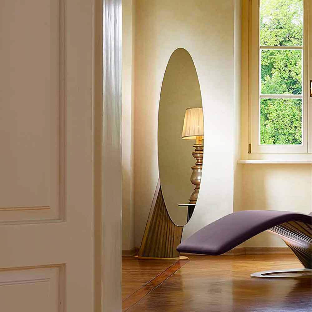 Luxus-Bodenspiegel aus Eschenholz und Metall Made in Italy - Cuspide