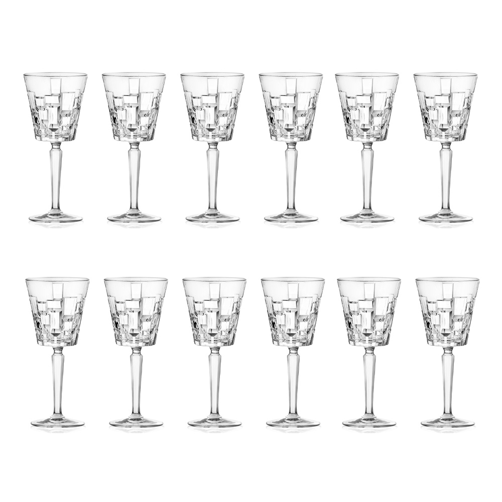 Öko-Kristall Wein- oder Wasserkelchset mit 12-teiligem Schnitzdekor made in Italy.
