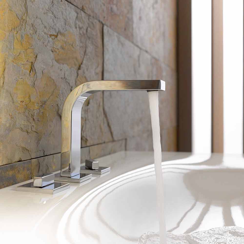 3-Loch Waschbecken im Bad Mischer aus Messing mit einem modernen Design.