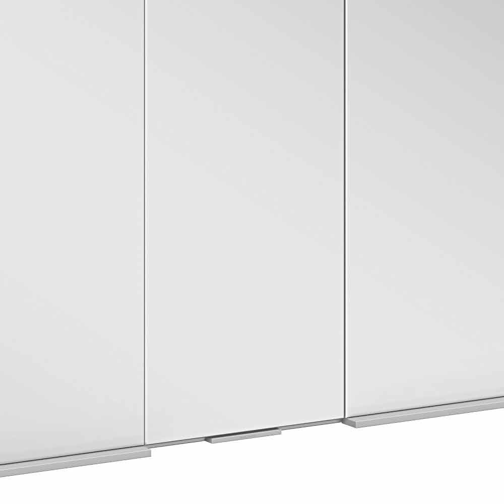 Spiegelbehälter für Einbau mit Struktur aus eloxiertem, silber lackiertem Aluminium und innerem Rückenteil aus weiß lackiertem Glas . Ausgestattet mit einem festen zentralen Tür- und 2 Spiegel Seitenaustüren (auch intern).