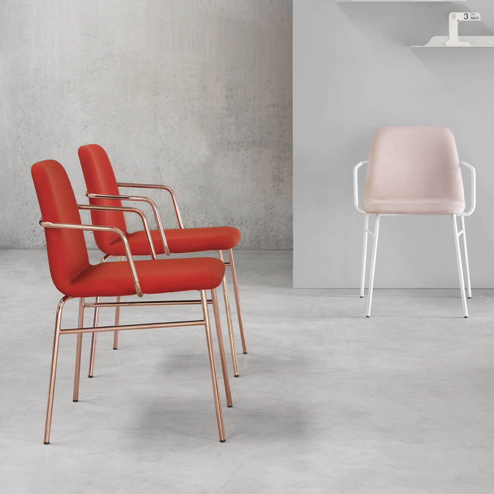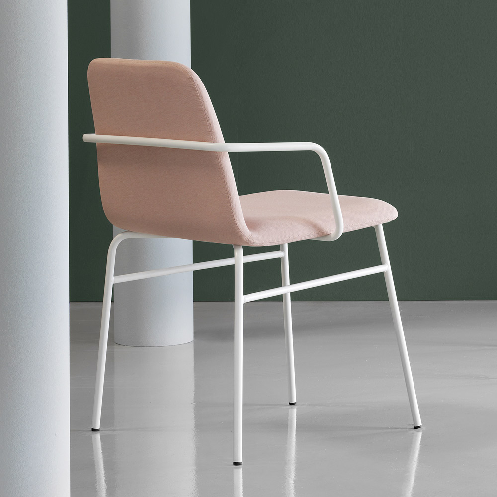 Hochwertiger Sessel made in Italy mit lackiertem Metallrahmen und gepolstertem Dämpfer und Stoffbezug . Ein einladender und bequemer Sitz, der jeden Moment zu einem Moment der Entspannung machen kann, indem Sie sich von der weichen und bequemen Umarmung dieses wunderbaren modernen Sessels verwöhnen lassen. Seine einhüllenden Formen und sein raffiniertes Design können jeden Einrichtungskontext charakterisieren und erobern dank ihrer starken und eleganten Persönlichkeit das Zentrum der Aufmerksamkeit.