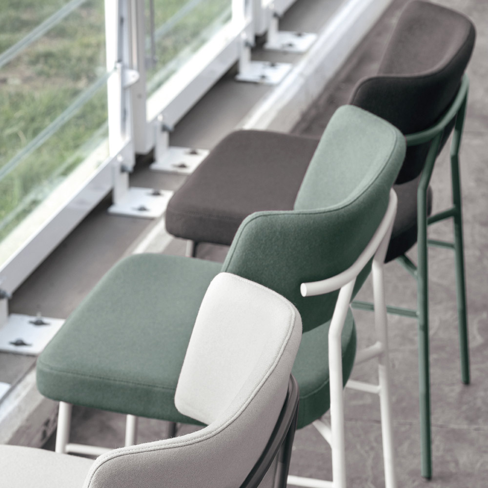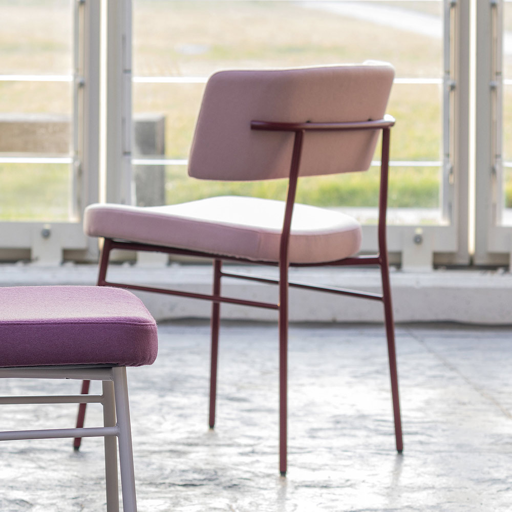 Moderner Stuhl für Esszimmer oder Küche mit lackierter Metallstruktur und mit Stoff bezogenem Sitz. Das Design zeichnet sich durch eine Konformation aus, die untersucht wurde, um eine komfortable und einladende Lösung zu gewährleisten, die gleichzeitig die Ästhetik des Raums auf innovative und äußerst moderne Weise bereichern kann. Die Verwendung hochwertiger Rohstoffe sorgt auch für einen soliden und robusten Stuhl und ist daher besonders funktional . Dank der Möglichkeit, zwischen verschiedenen Farbkombinationen zu wählen, kann es sich außerdem an alle Bedürfnisse anpassen und am besten auf diejenigen reagieren, die eine nüchternere und diskretere Lösung benötigen, aber auch auf diejenigen, die ein farbenfrohes und lebendiges Aussehen wünschen bereichern und ihre eigenen einzigartig machen. Möbel.
