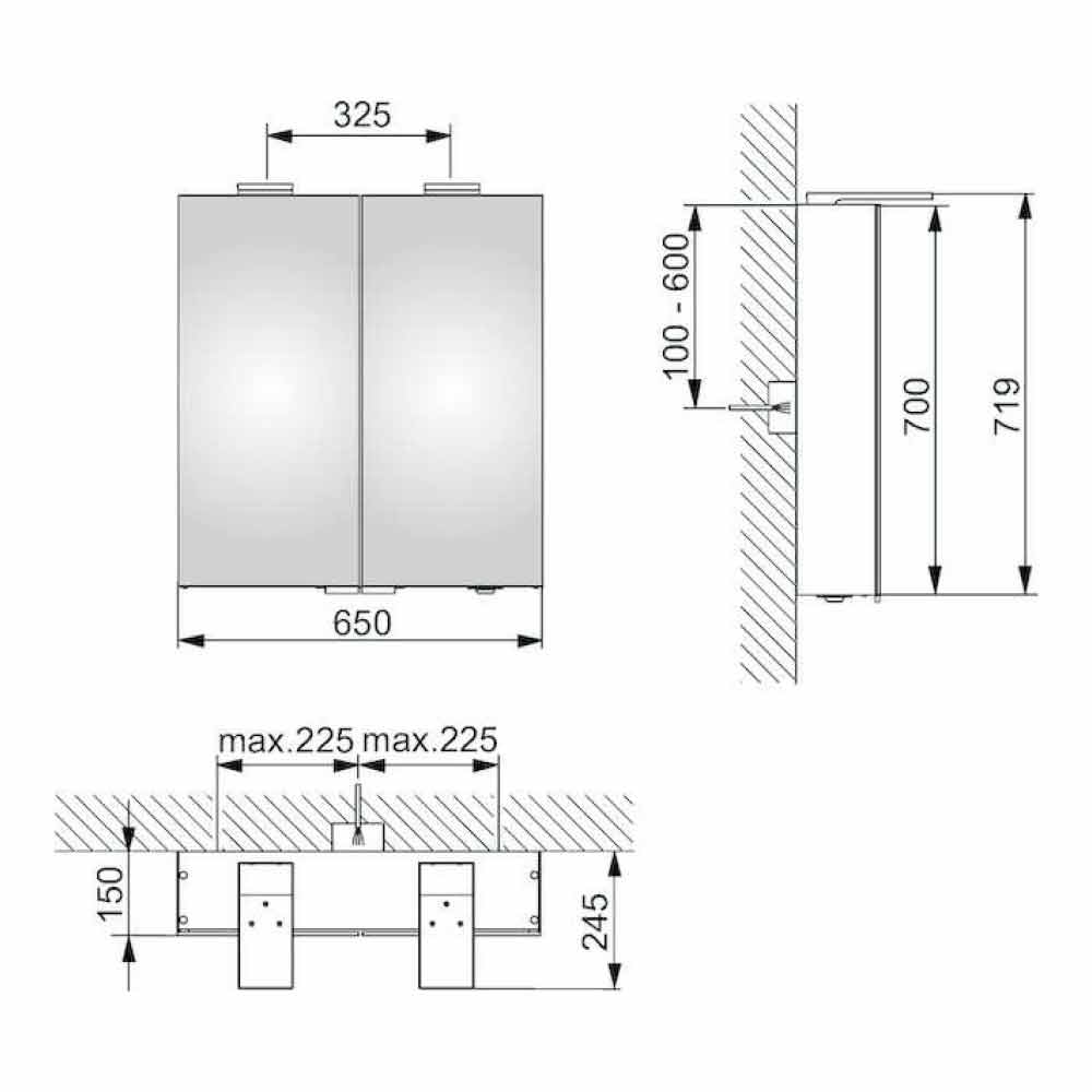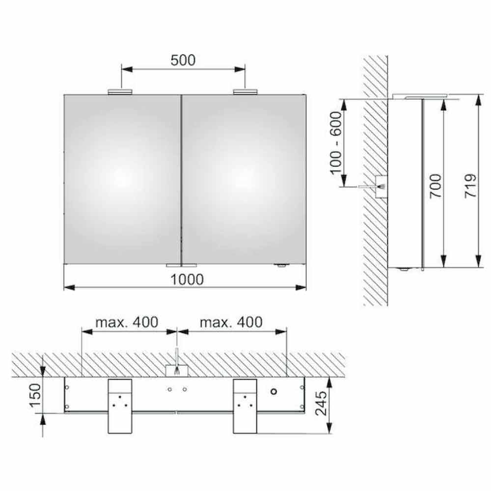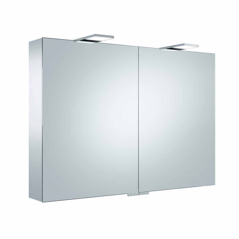 Containerspiegel mit 2 verspiegelten Flügeltüren (auch innen) und Seitenspiegeln mit LED-Beleuchtung.