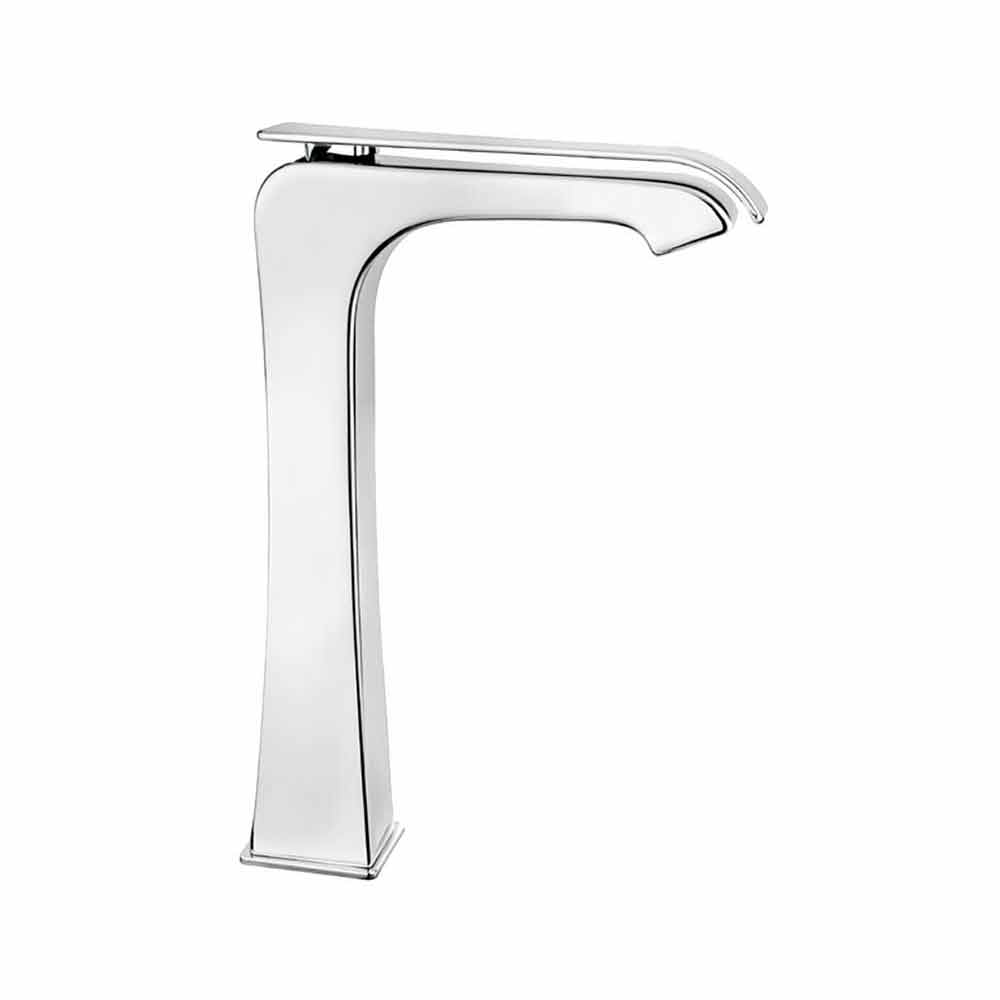 Hochmoderner und kreativer Design- Waschtischmischer aus verchromtem Messing mit einer Höhe von 275 mm und einem Achsabstand von 135 mm, ohne Abfluss und ohne Aufstellloch. Komplett in Italien hergestellt mit hochwertigen Materialien, die den europäischen Standards entsprechen. Dieser Mischer sieht die Installation auf dem Boden vor, ausgestattet mit einem Cache-Belüfter und einer Keramik-Disc-Kassette. Empfohlen für sein Energiesparsystem zur Wassereinsparung von 6 l / min und für seine flexiblen Anschlüsse.