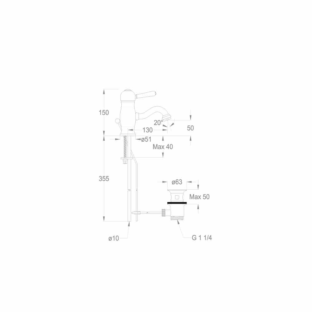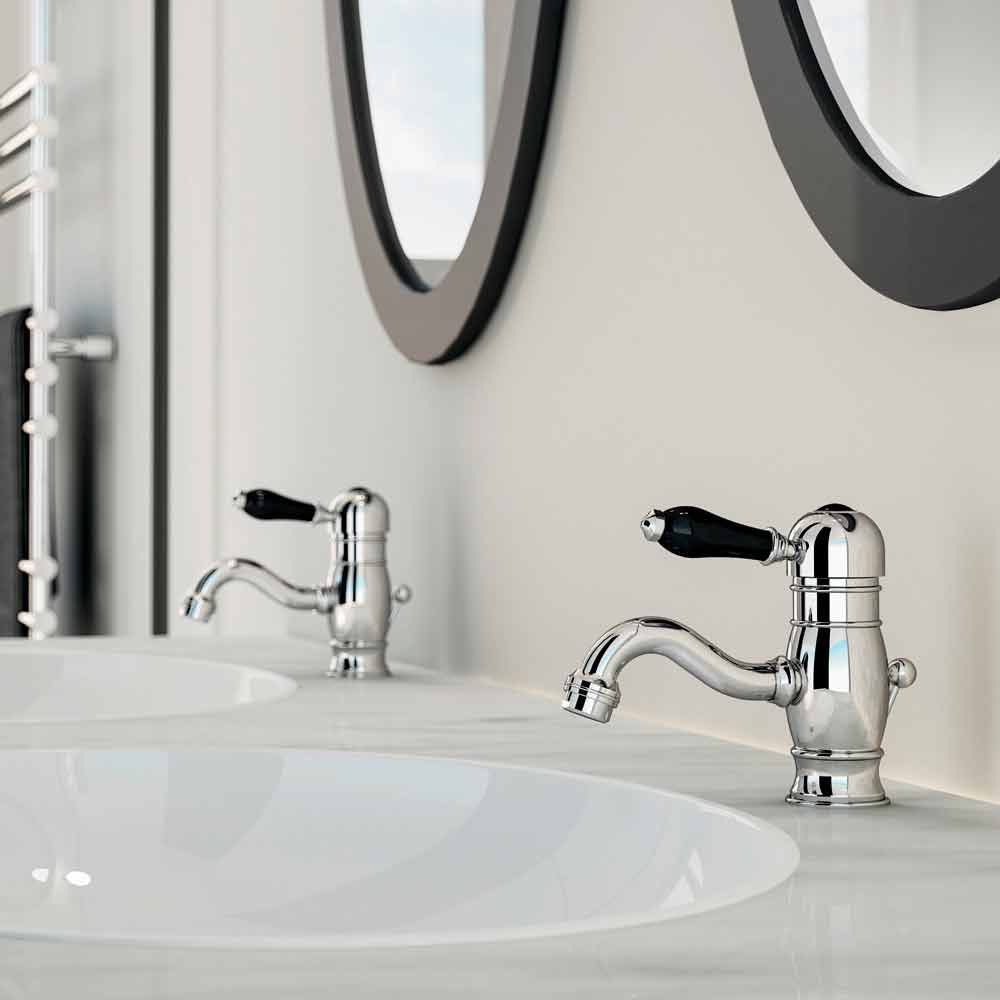 Klassisches Design Platte Tischmischer 150 mm hoch und 130 mm mit einem Mittenabstand, mit Drain- und Ablaufgarnitur. Komplett in Italien hergestellt mit hochwertigen Materialien, die den europäischen Standards entsprechen.