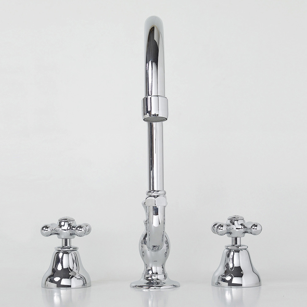 Messing-Badezimmer-Waschtischarmatur 3 Löcher hoher Auslauf mit Ablauf - Ercolina