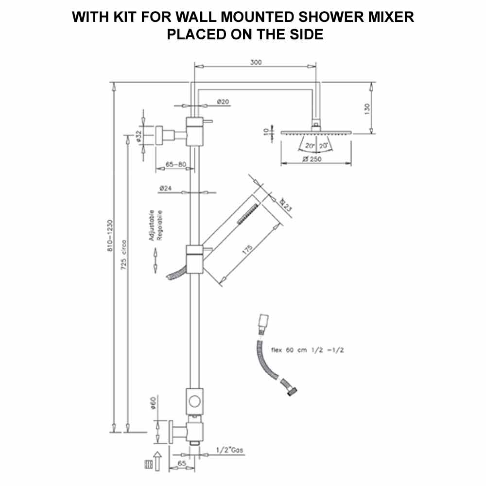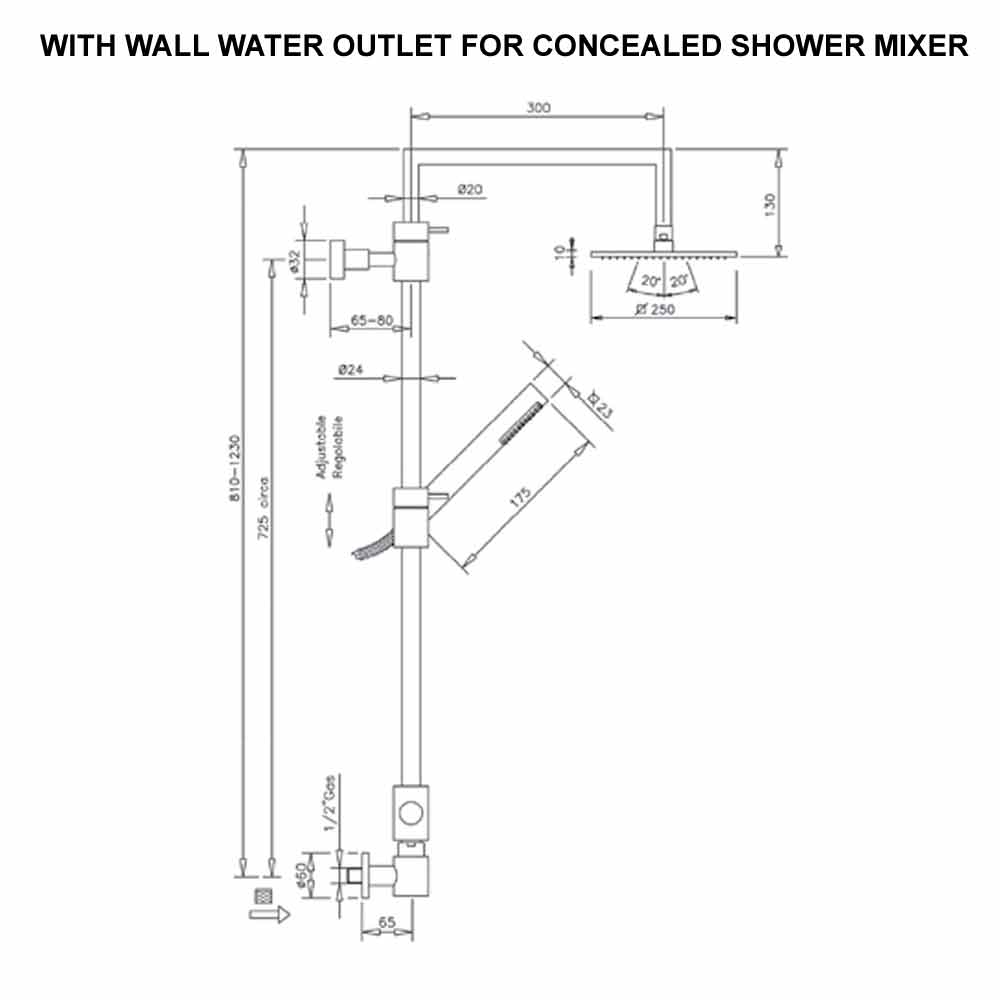 Duschkopf: 250x250 mm.
