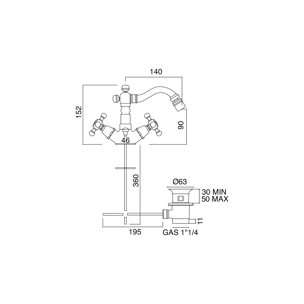 Ursula è eine wunderschöne Einloch-Bidet-Mischbatterie mit Ablauf, aus Messing.