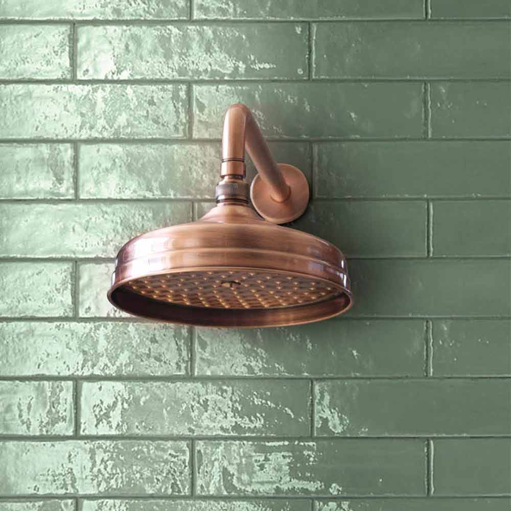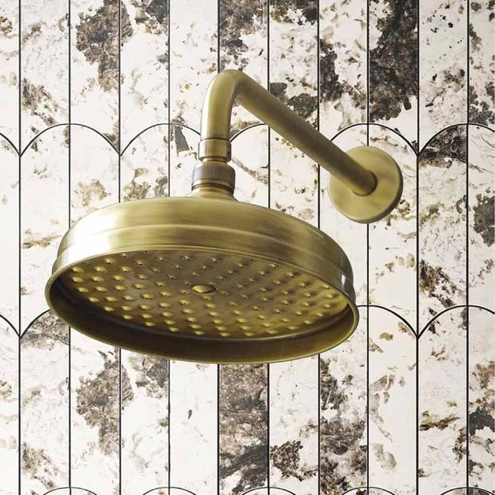 Klassischer, wandmontierter Einstrahl-Duschkopf aus Messing, hergestellt in Italien.
