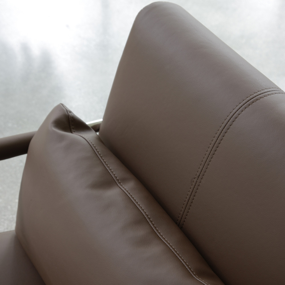 Gestell aus poliertem Chrom, Sitz aus braunem Kunstleder