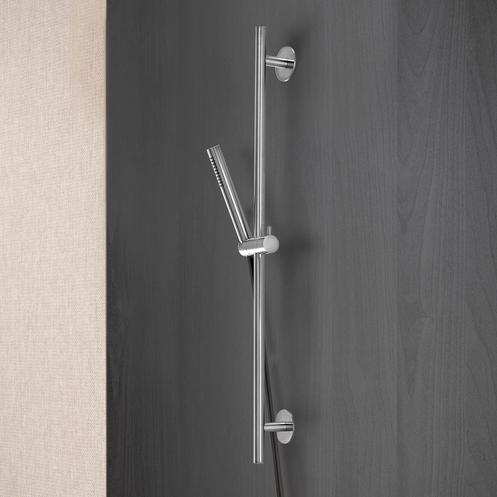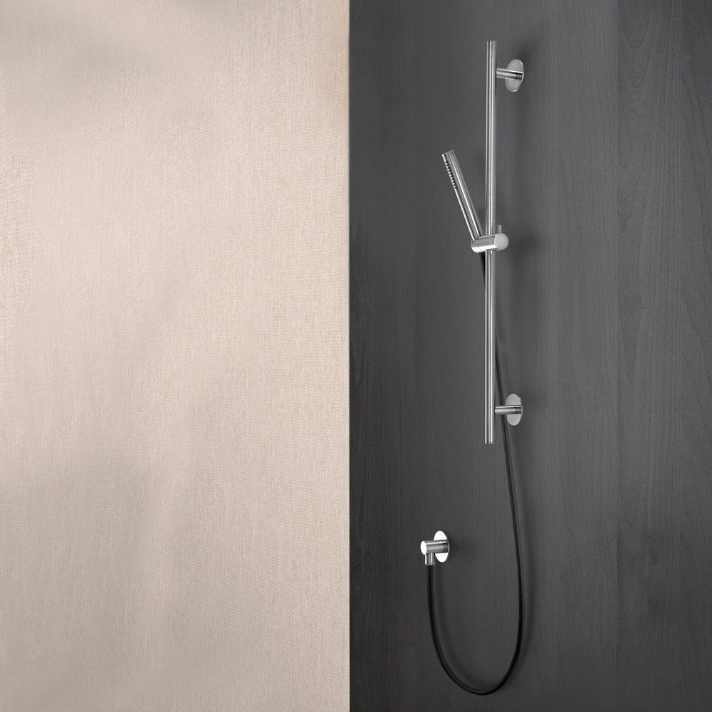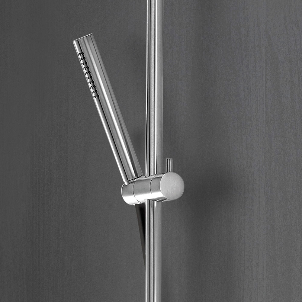 Duschstange aus Stahl, bestehend aus: Rampe mit runder Stahlstange, rundem Duschkopf aus kalkfreiem Stahl, verdrehsicherem Darkflex-Schlauch. Hergestellt in Italien.