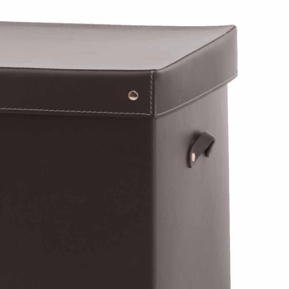 regeneriertem Leder handgefertigt und mit einem Deckel und Gummifüßen angereichert wurde.