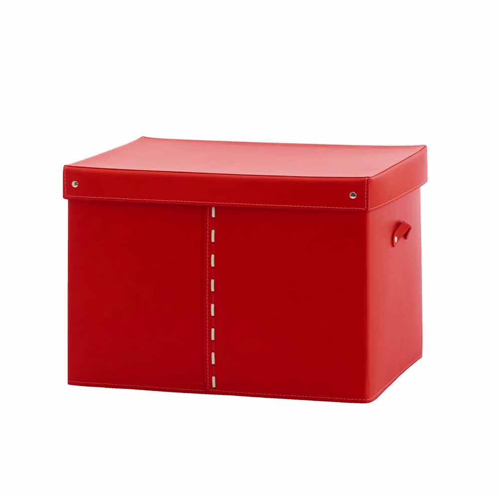 Moderner Design-Aufbewahrungsbehälter, handgefertigt in Italien aus farbigem, regeneriertem Leder.