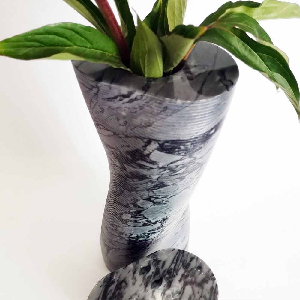 Dekorative Vase aus modernem Design aus geblühtem Bardiglio-Marmor Made in Italy.