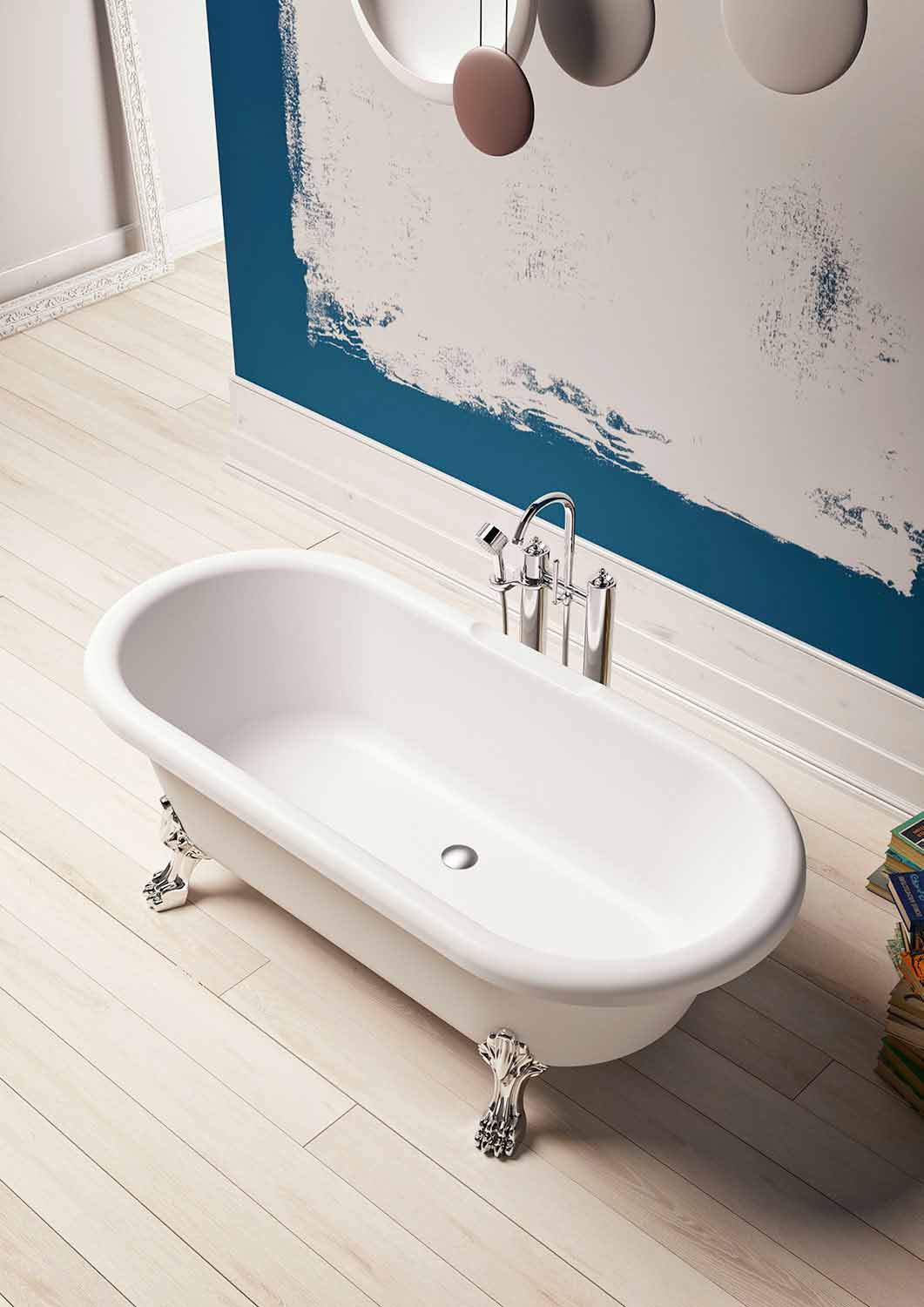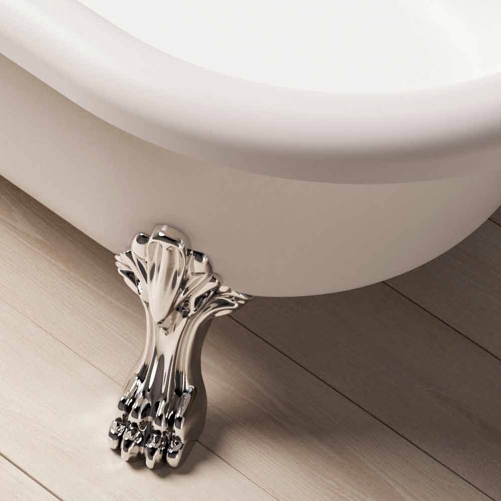 strengen und dennoch eleganten Design. Die Besonderheit dieser Wanne sind ihre verchromten Füße: Sie ruhen auf Löwentatzen, die ihre Persönlichkeit definieren und betonen. Als