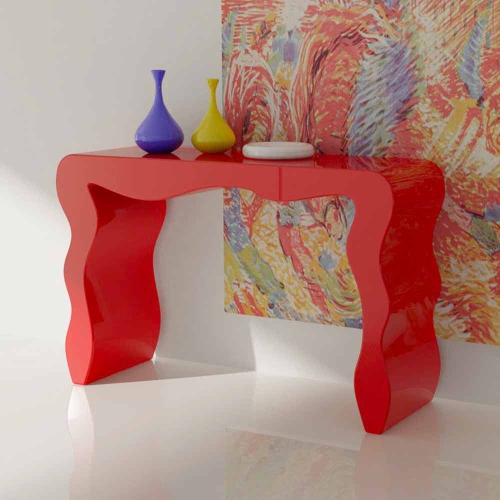 Moderne Designkonsole made in Italy, Wow Wow ist eine feste Konsole, die vollständig aus Solid Surface®-Harz besteht. Es zeichnet sich durch ein filigranes und modernes Design aus und wird der Protagonist Ihrer Wohn- und Objektumgebungen sein.