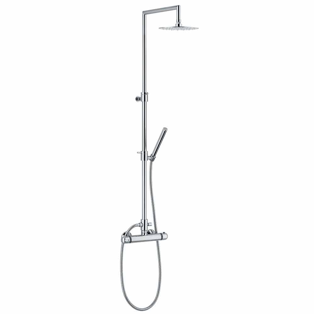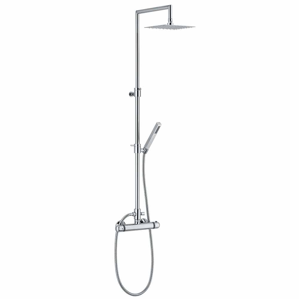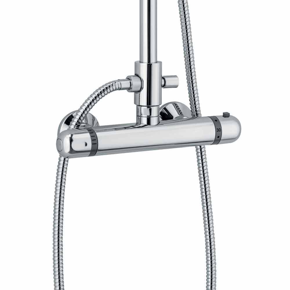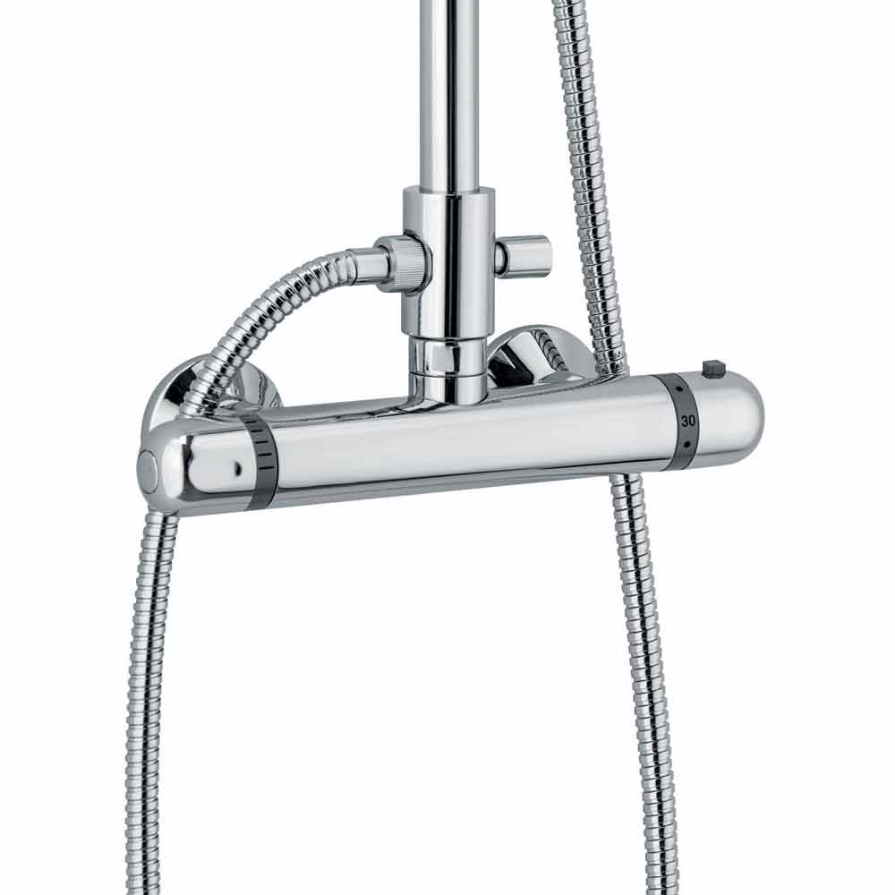 Duschsäule aus verchromtem Messing mit Thermostatmischer mit Zubehör aus Edelstahl und ABS .