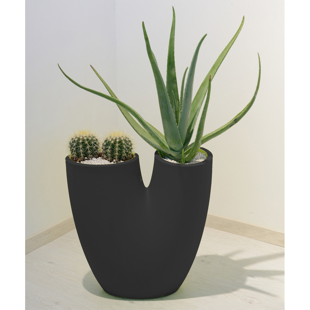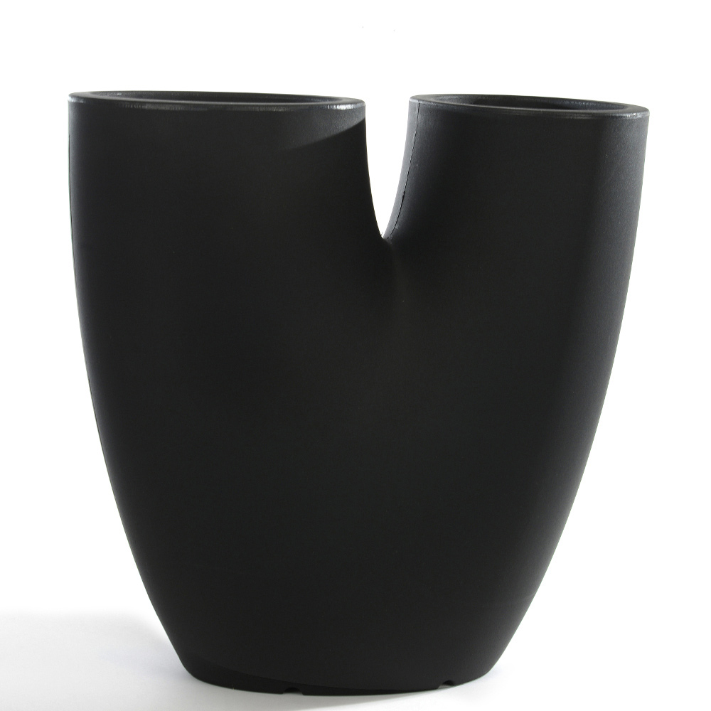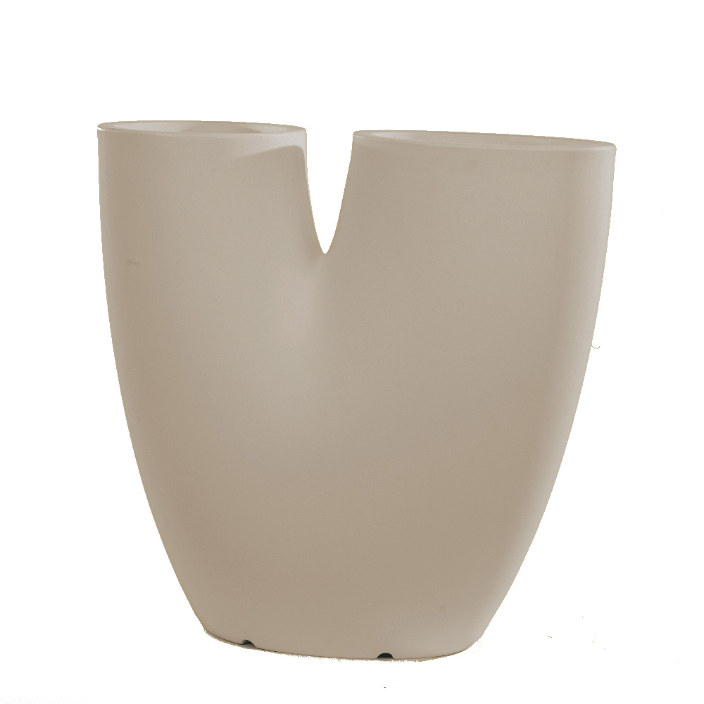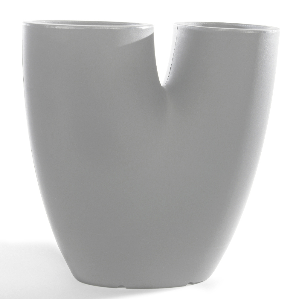 Flowes ist eine moderne Vase mit einem schlanken und fesselnden Design, die dank der zwei vorhandenen Löcher zwei Arten von Pflanzen in einer einzigen Vase platzieren kann. Sie kann sowohl als Vase als auch als Vasenhalter verwendet werden. In verschiedenen Farben erhältlich, eignet es sich sowohl für den Außen- als auch für den Innenbereich.