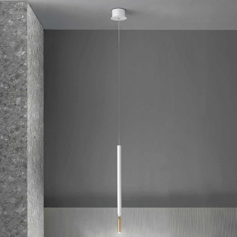 Komplett in Italien hergestellteHängeleuchte aus lackiertem Metall mit weißem und goldenem Finish und LED-Licht mit längenverstellbarem Kabel . Ziel dieses Produkts ist es, die Tradition durch einen zeitgenössischen Ansatz aufzuwerten, bei dem Stil, Klasse und Innovation zu neuen Designformeln verschmelzen, um jede Umgebung mit Geschmack und Charakter einzurichten und zu beleuchten. Stärken sind die Besonderheit der Formen , die Qualität der Materialien und die Einzigartigkeit der Lichtquelle .