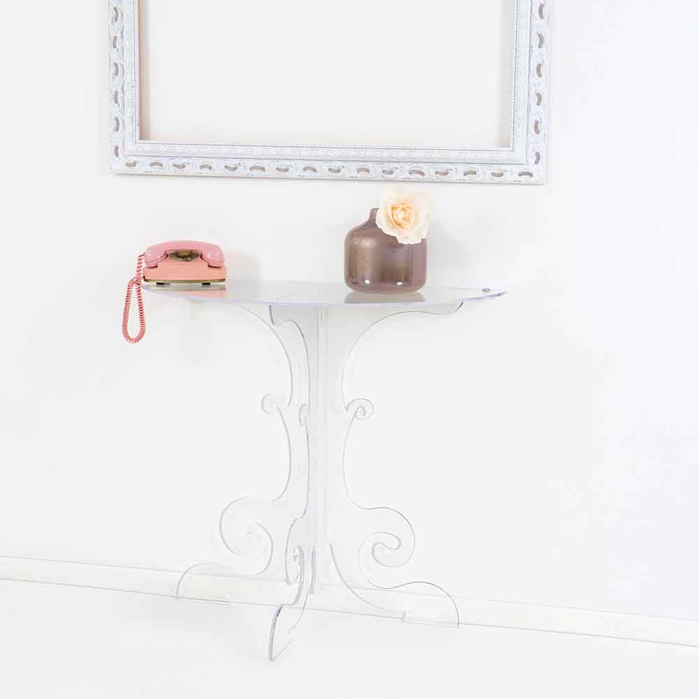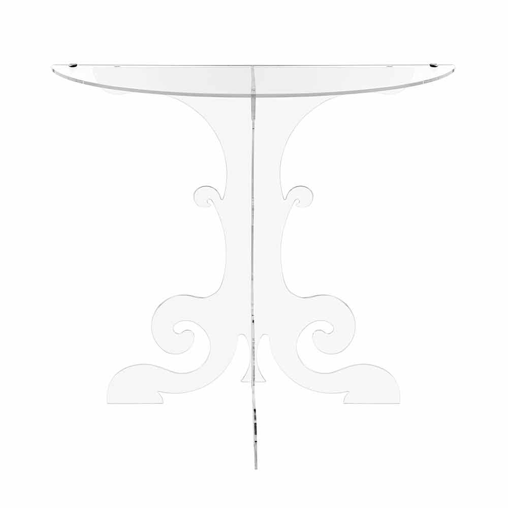 Moderner transparenter Plexiglas-Konsolentisch aus Italien, Belfiore Belfiore ist eine wunderbare Wandkonsole, die vom Ende des 18. Jahrhunderts inspiriert wurde und sich durch ein modernes, überarbeitetes und perfektes Design auszeichnet, das in jede Umgebung integriert werden kann.