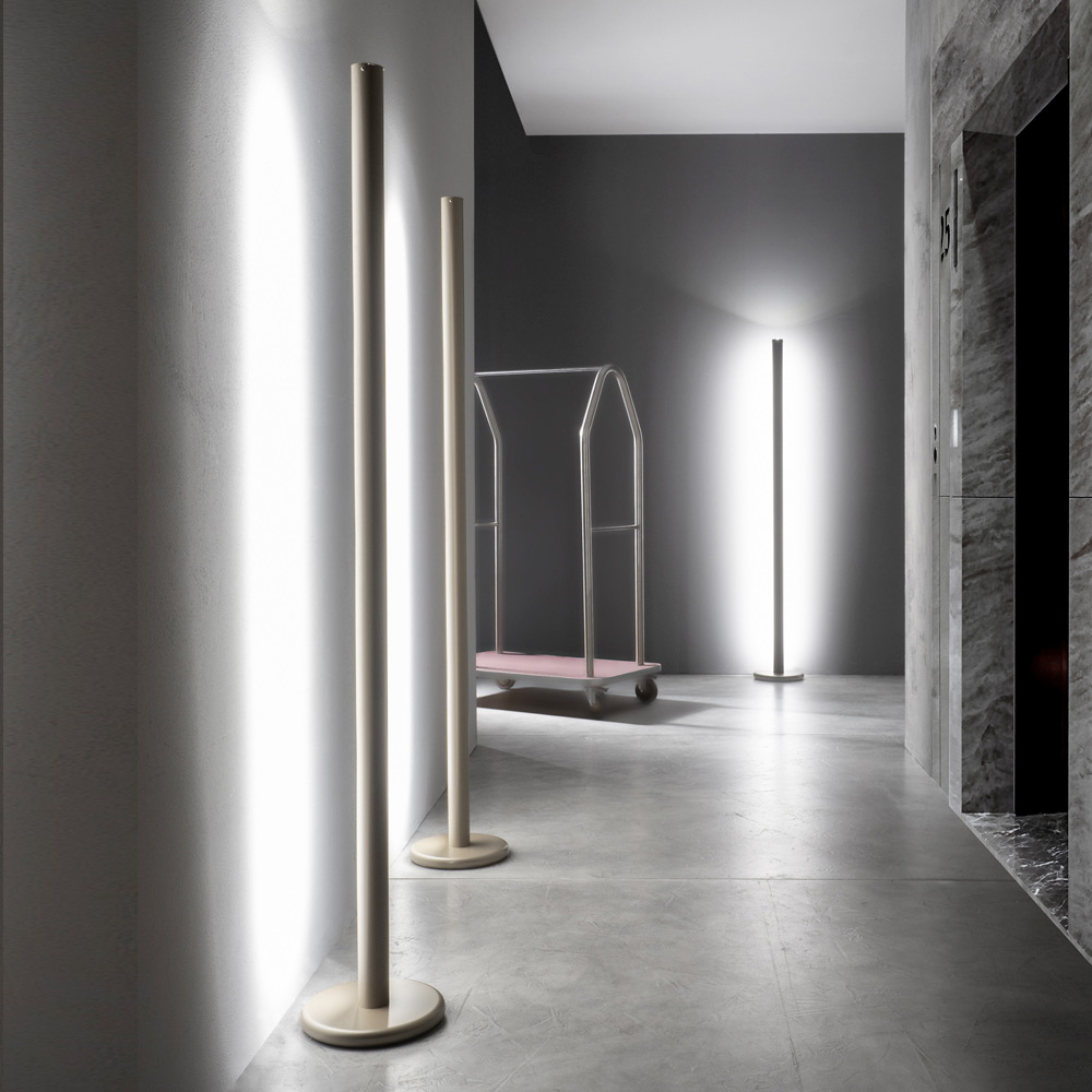 Stehleuchte aus Metall mit doppelter vertikaler Beleuchtung, modernes Design, hergestellt in Italien.