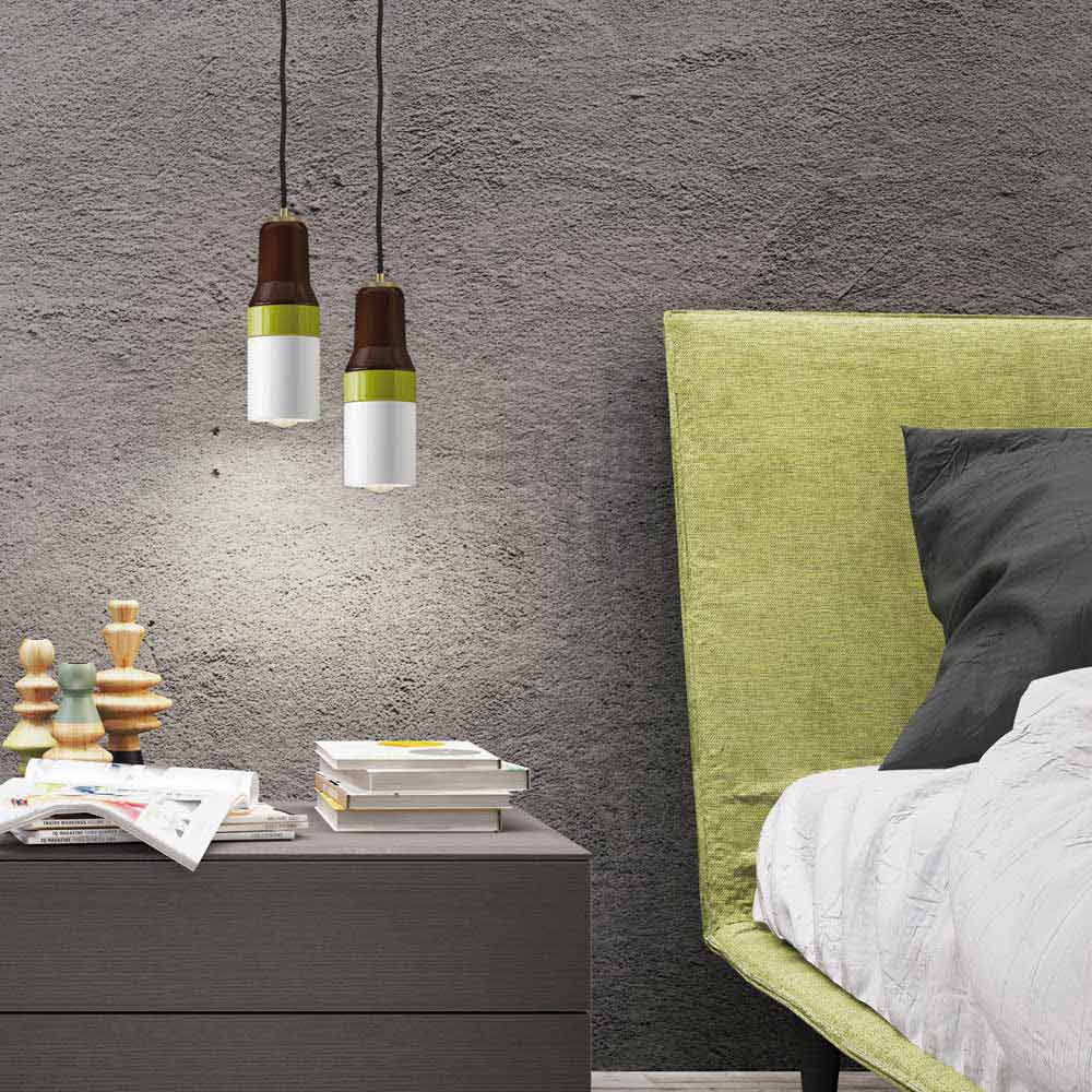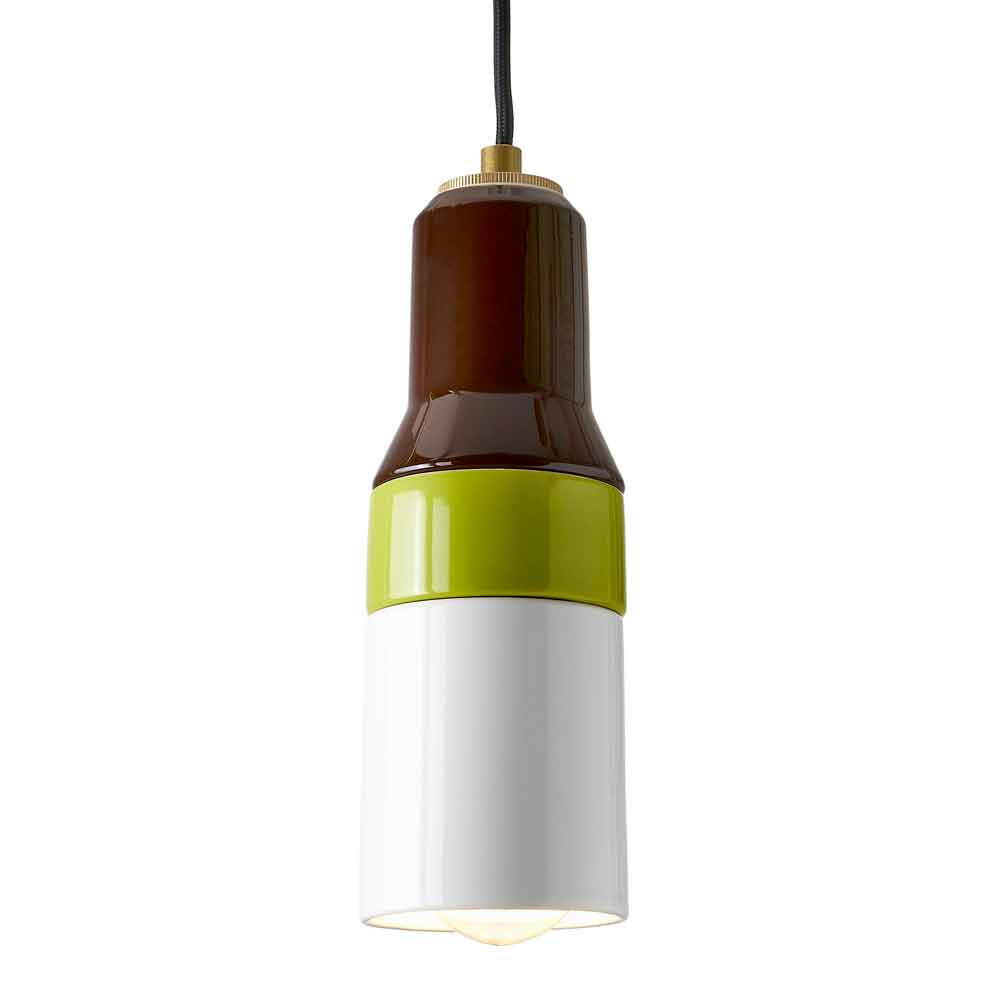 Moderne Pendelleuchte aus Messing und Keramik Asia made in Italy Die Asia Pendelleuchte zeichnet sich durch ein ultramodernes und modisches Design aus. Hergestellt aus brauner, grüner und weißer Keramik mit schwarzem Kabel und Messingkabelklemme.