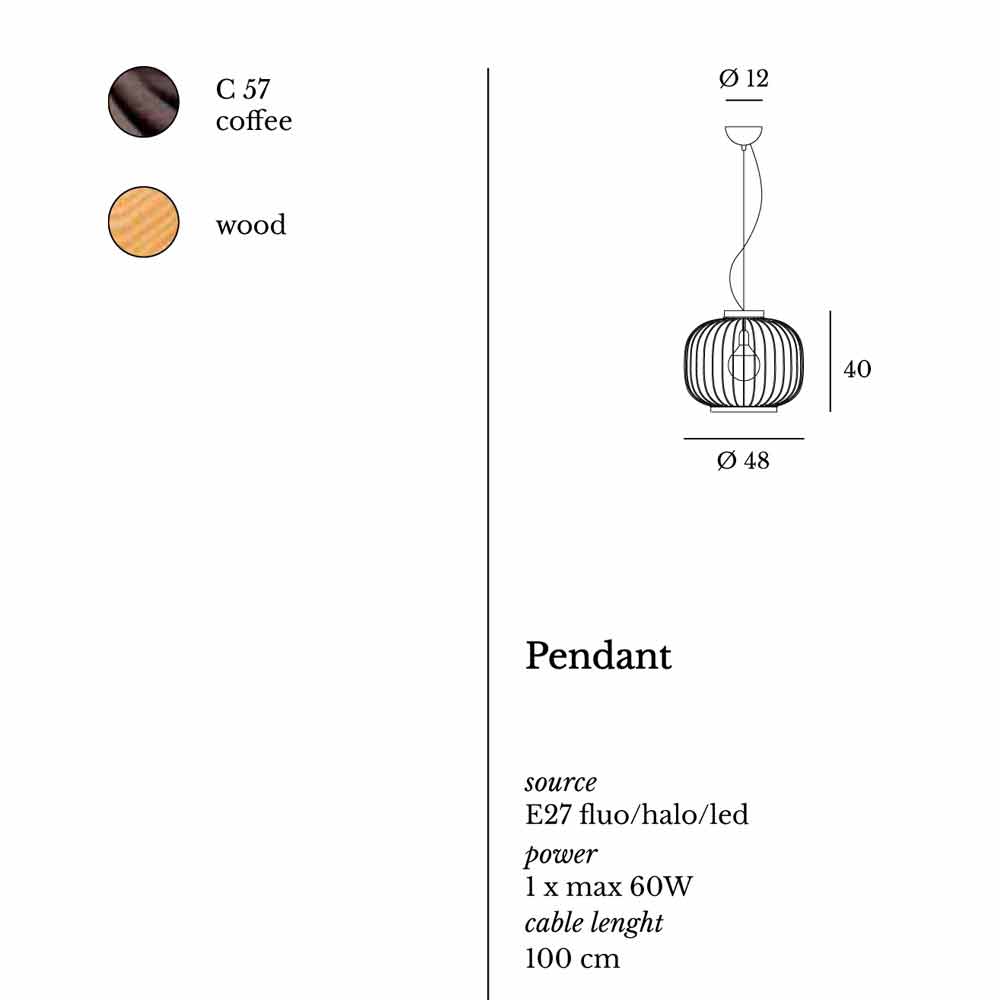 Hängeleuchte aus geformtem Stahlstab und mit Epoxidpulver lackiert. Die zwei Bänder, die den runden Körper schließen, sind aus natürlichem Holz. Beren ist auch in kundenspezifischen Farben erhältlich. Fordern Sie ein Angebot an: clienti@viadurini.it . 100% Made in Italy Produkt. Birne: 1 x max 60w - E27 (nicht im Lieferumfang enthalten).