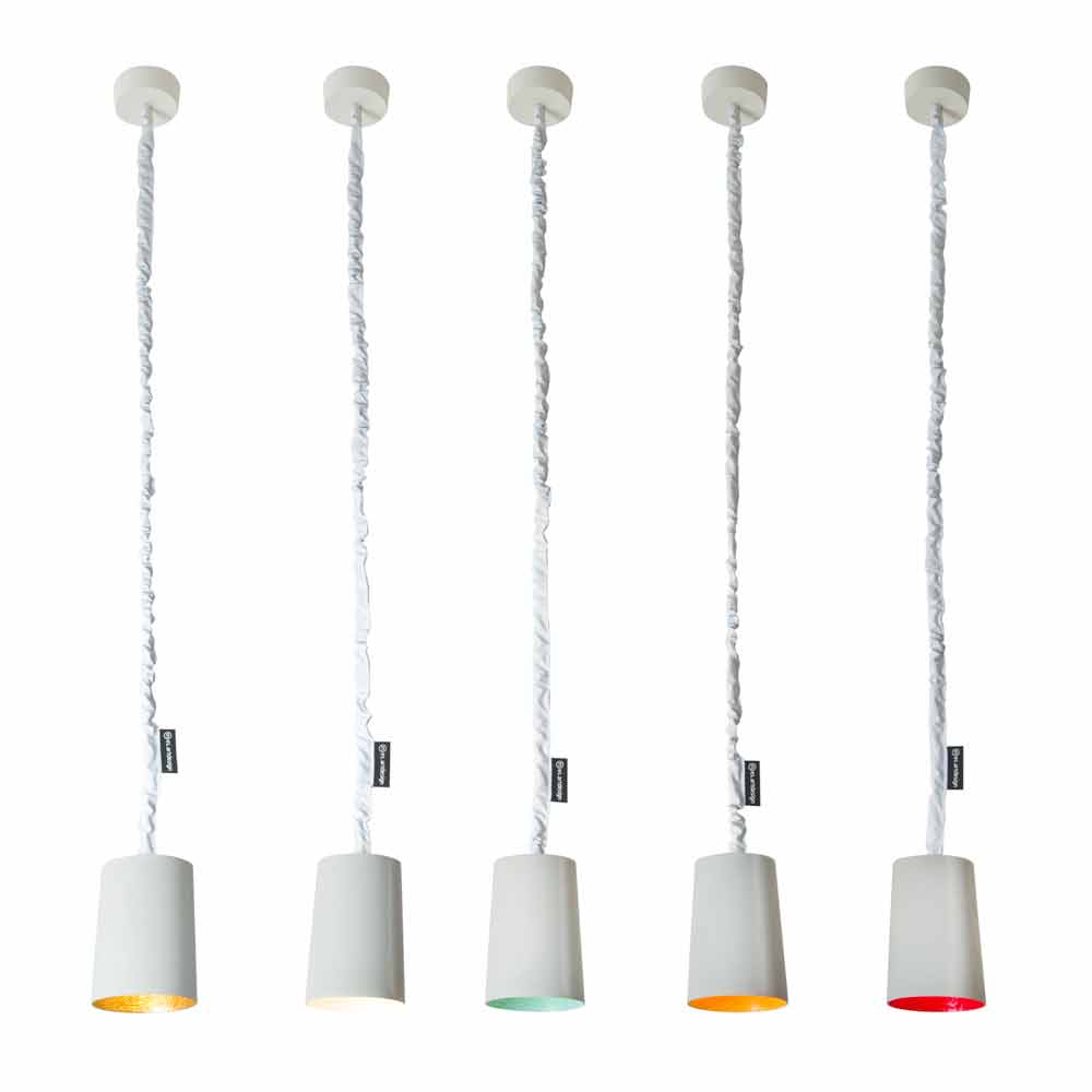 Die Paint Cement Lampe ist in verschiedenen Farben erhältlich: - außen grauweißer Innenraum; - außen grauer roter Innenraum; - außen türkisgrau außen; - orange graues Äußeres; - außen goldgrauer Innenraum; - Magenta innen grau außen; - blaugraues Inneres; - außen grauer Bronzeinnenraum; - silbergraues Äußeres.
