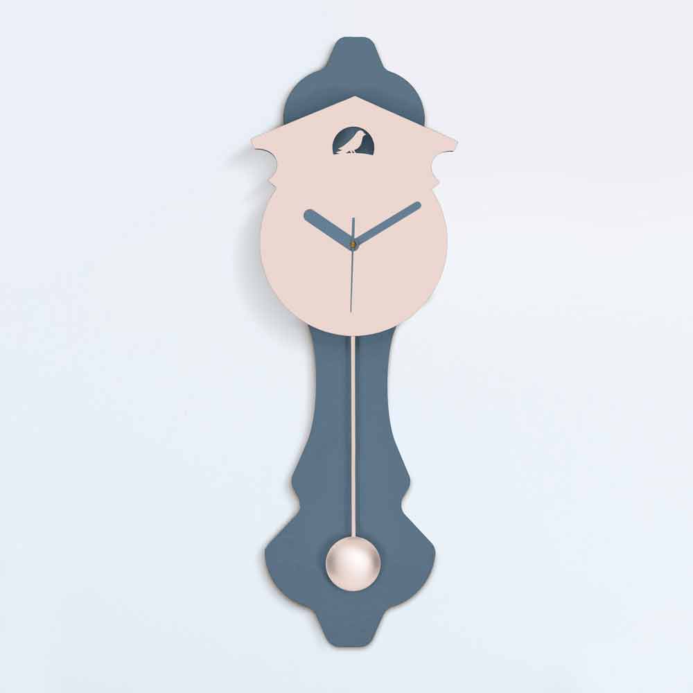 Dies ist die moderne Neuinterpretation des klassischen Pendels mit einem Haus und einem Vogel, mit einem frischeren und minimalistischen Design und ungewöhnlichen Farben , ideal, um der zeitgenössischen Umgebung einen Retro-Touch zu verleihen, ohne sie zu schwer zu machen.