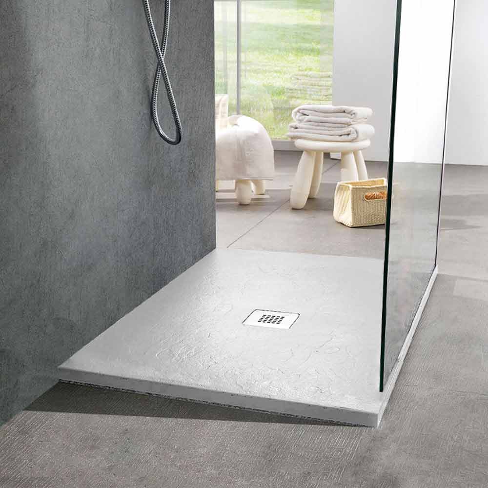 Quadratische Duschwanne aus weißem Harzmit Schiefer-Effekt . Komplett mit Stahlgitter und Abfluss. Der Charme der Textur und ihre Details bereichern ein einfaches und minimalistisches Design, um eine Duschwanne zu schaffen, die den Anforderungen an Funktionalität und gleichzeitig Stil und Eleganz gerecht wird und versucht, einer Einrichtungslösung Leben einzuhauchen, die avantgardistische Ideen bietet . und völlig innovativ. Was geboren wird, ist daher ein Produkt mit einer klar definierten Persönlichkeit, die in der Lage ist, die umgebenden Möbel zu verbessern, indem sie ihren ästhetischen Wert erhöhen und eine beispiellose Qualität garantieren.