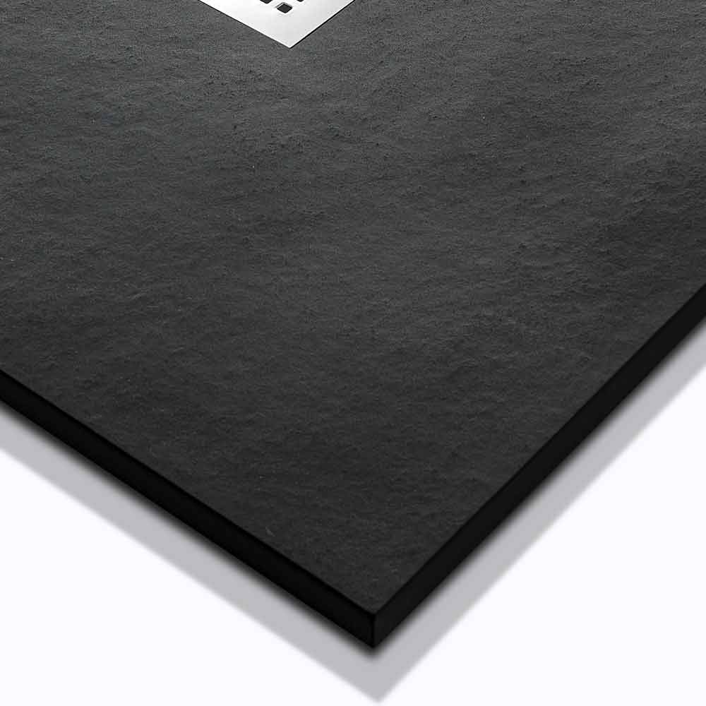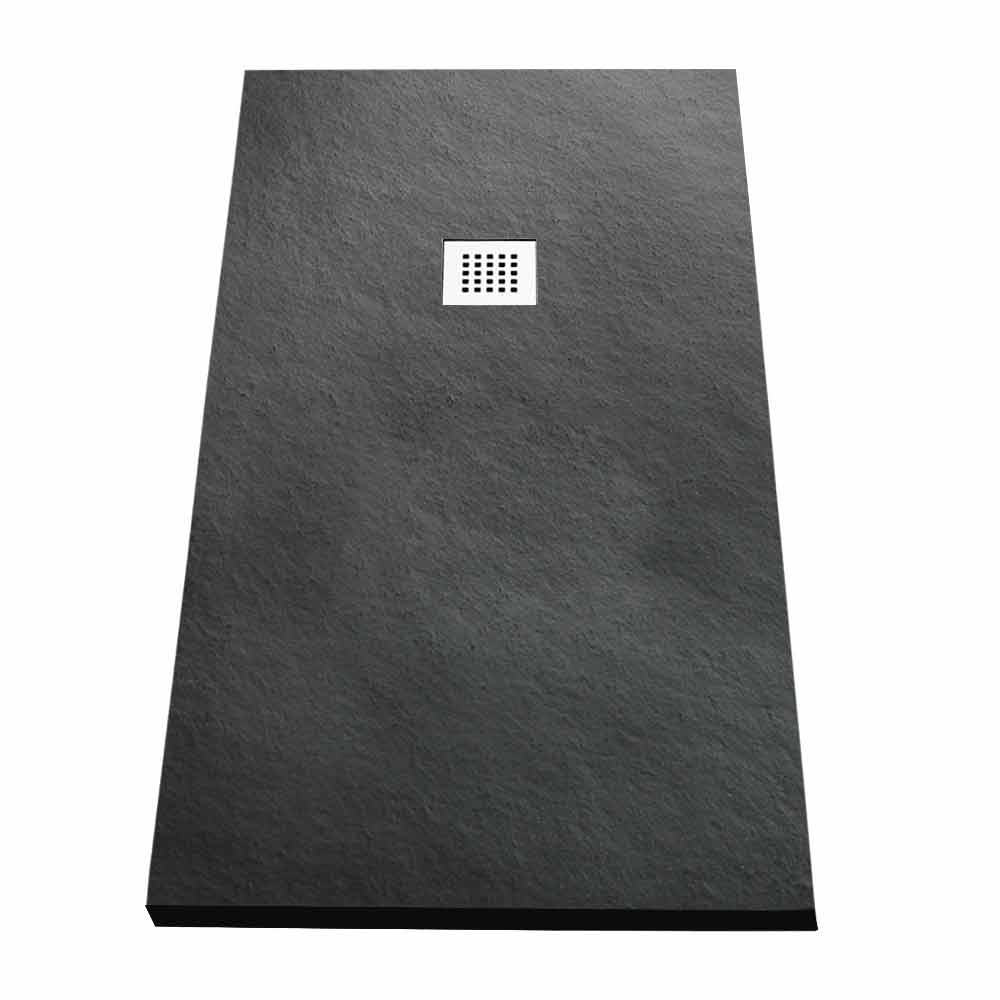 Moderne Duschwanne 160x80 aus Harz mit Stein- und Stahleffekt.