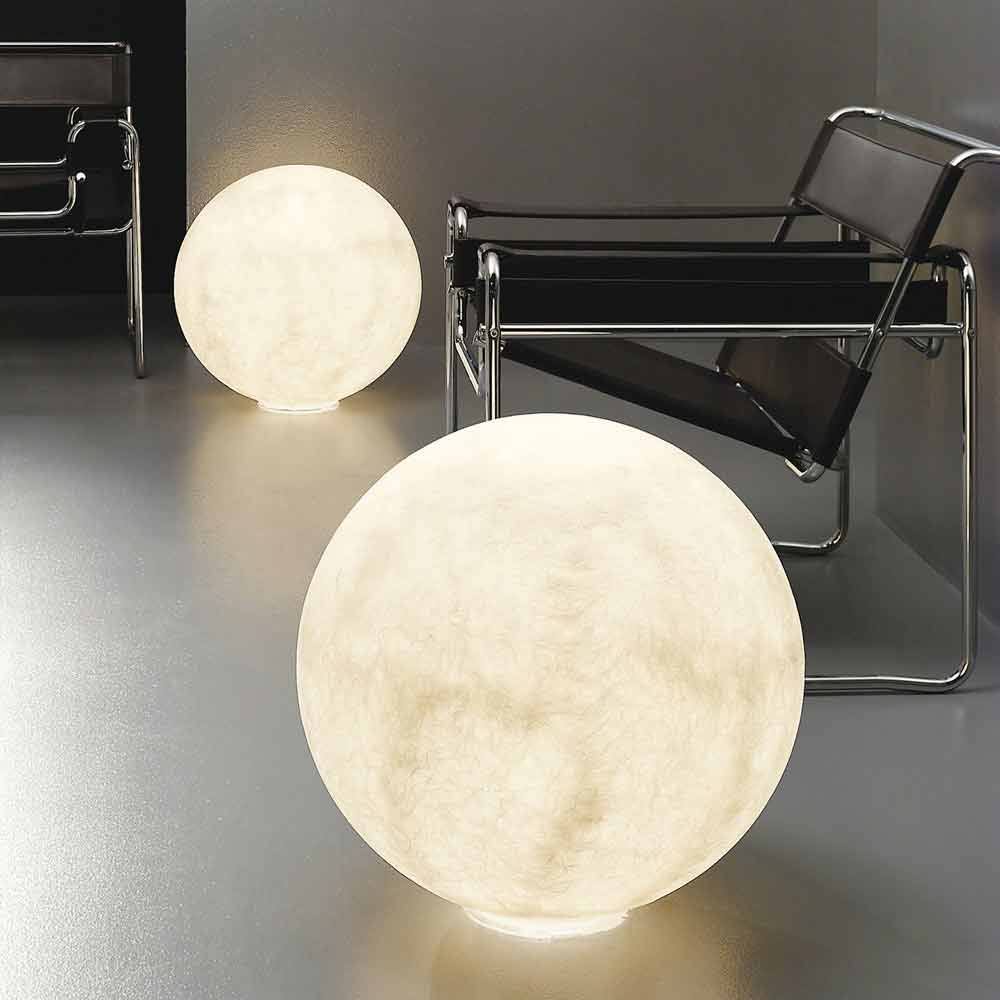 Moderne sphärische Tischlampe In-es.artdesign Floor Moon-Nebel Floor Moon Stehleuchte ist eine leuchtende Ergänzung mit großer Wirkung, ideal für die Dekoration des Wohnbereichs, des Schlafzimmers oder des Arbeitszimmers. Es wurde von In-es.artdesign für die Luna-Kollektion entworfen und reproduziert die magische Mondatmosphäre dank des Materials, aus dem es besteht: Nebulite® , ein Material aus Harz und Fasern, dessen Adern der Lampe diese besondere Wirkung verleihen.
