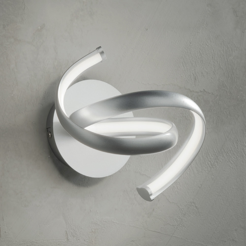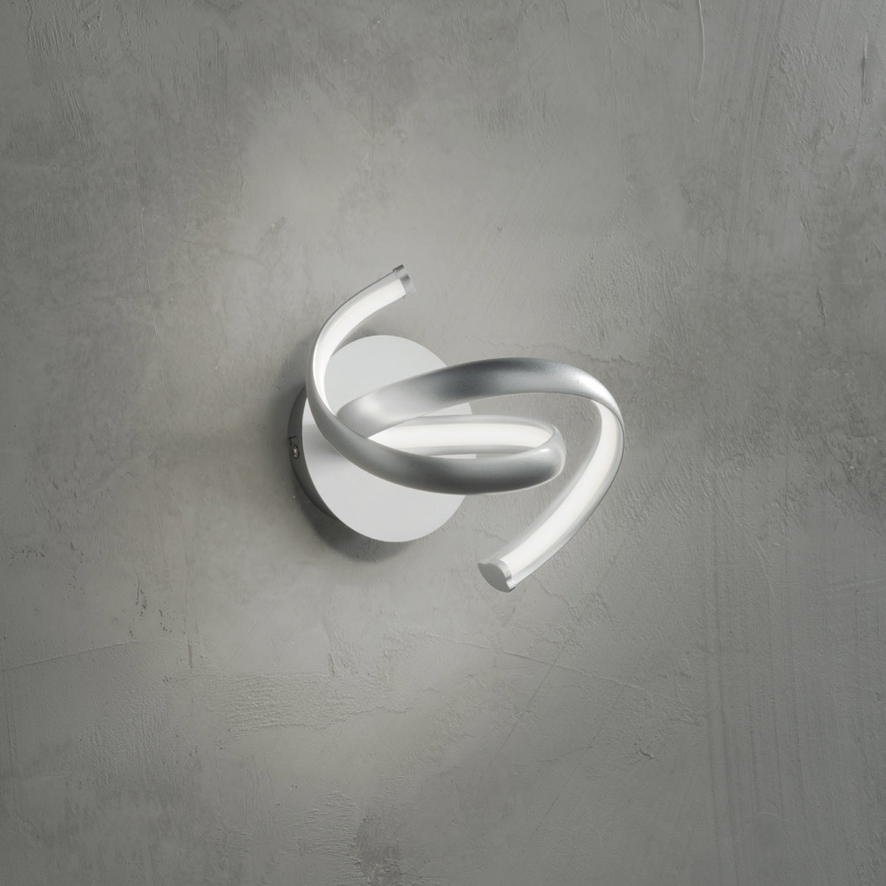 Wandleuchte aus silberfarben lackiertem LED-Metall.