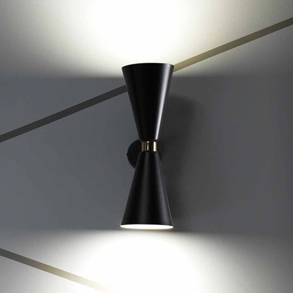 Diese vollständig in ItalienhergestellteWandleuchte besteht aus mattschwarzem Metall mit goldfarbenen Details. Seine Struktur sowie seine Abmessungen machen es zu einer perfekten Lösung für diejenigen, die ein Möbelstück mit modernem Design suchen, das ideal als Lichtquelle in Wohn- oder Schlafzimmern verwendet werden kann, um kleine Ecken zum Lesen zu schaffen. oder einfach zum Entspannen. Sein Design zeichnet sich durch die Verwendung der konischen Form aus, die in Kombination mit dem Finish und den goldenen Details ein äußerst elegantes und raffiniertes Produkt zum Leben erweckt, das die Einrichtung jeder Umgebung im zeitgenössischen Stil revolutionieren kann.