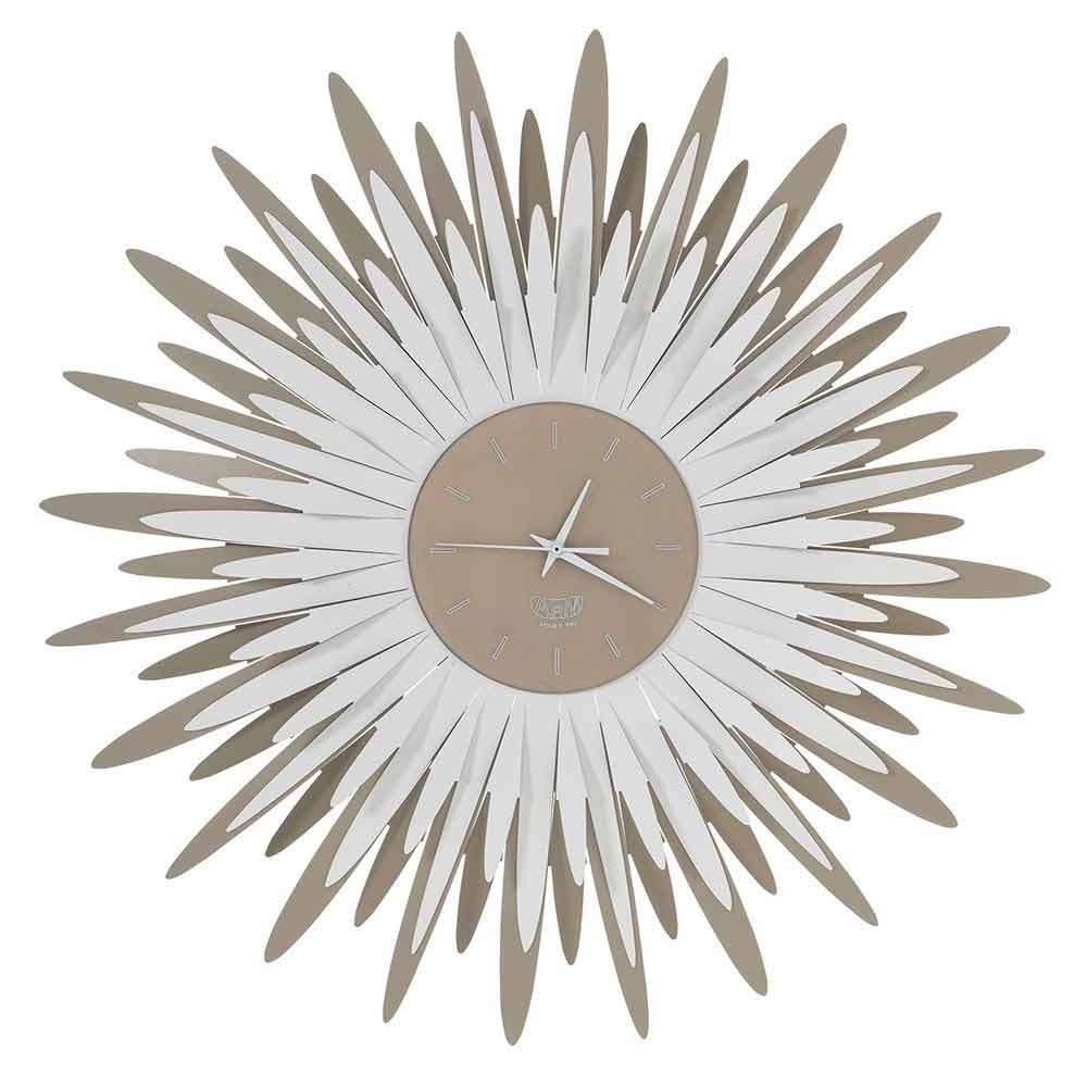 Design Wanduhr hergestellt in Italien aus Eisen in bronze und goldfarbe, schlamm und elfenbein oder sand und weiß.