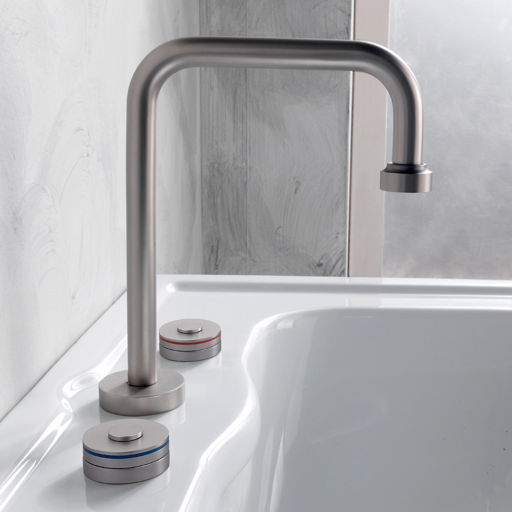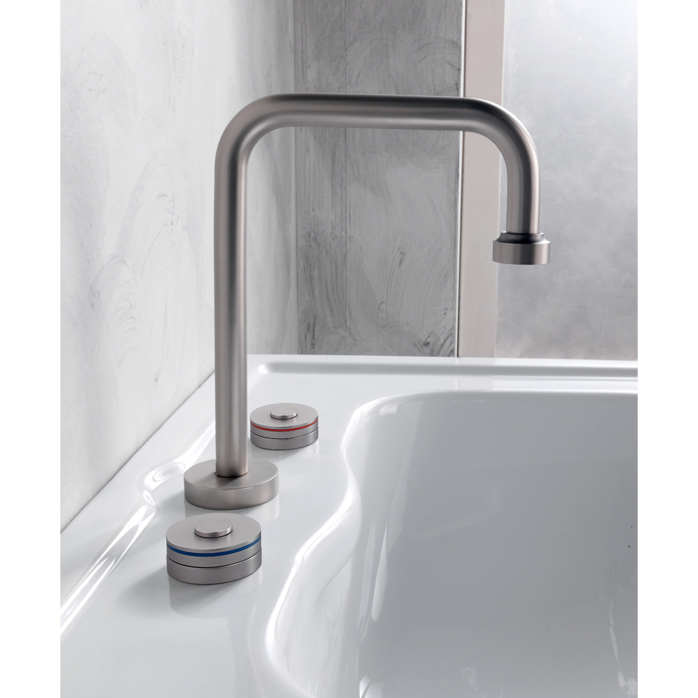 Moderne 3-Loch-Waschtischarmatur aus Messing mit Ablaufgarnitur Made in Italy