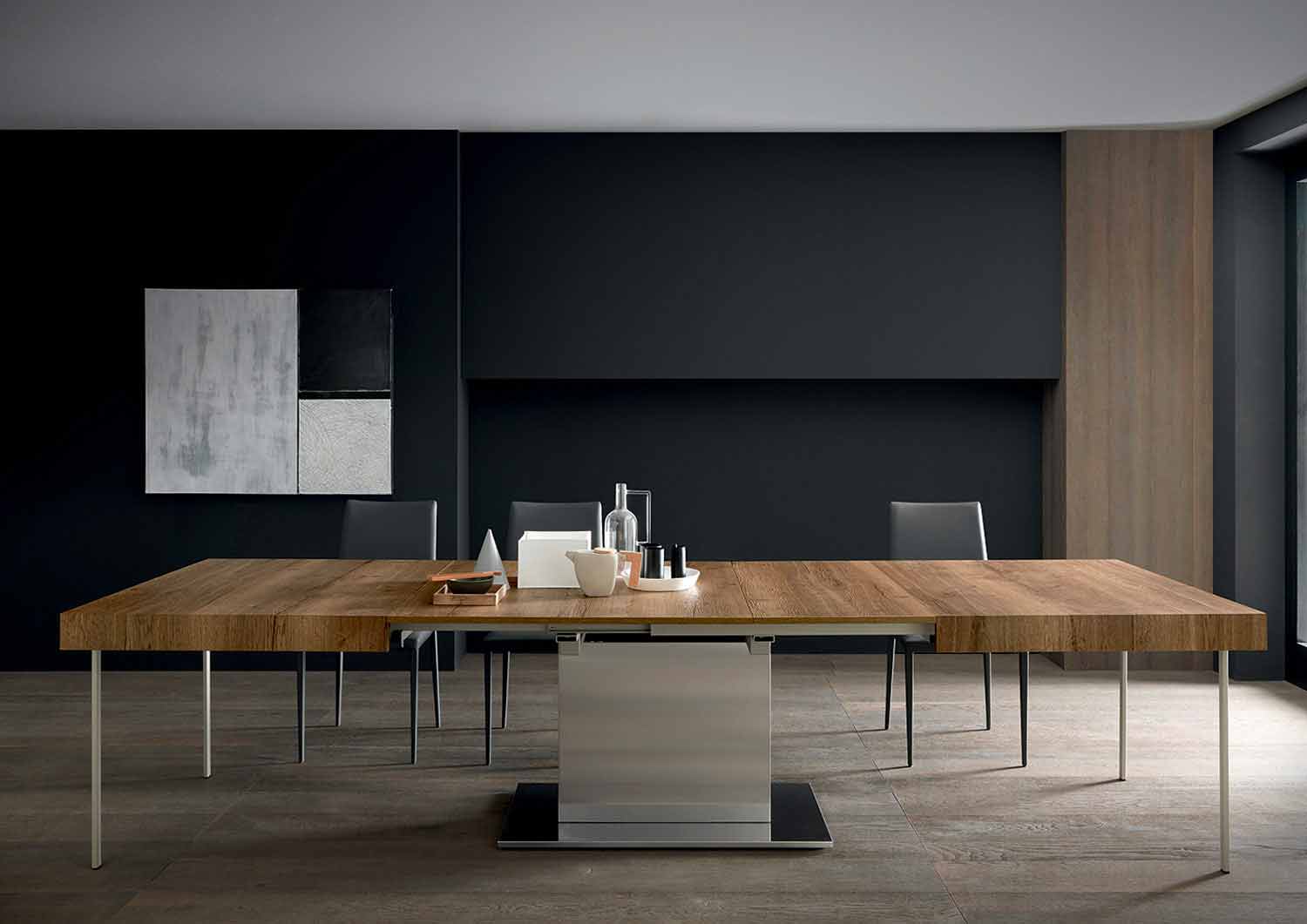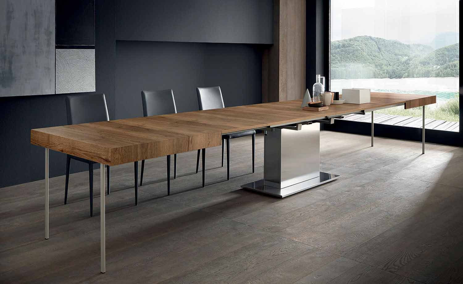 Dieser ausziehbare Tisch zeichnet sich durch ein kleines und dezentes Design für die Wohnzimmerversion aus, das jedoch in der offenen Version zu überraschen und große Emotionen zu wecken weiß. Seine Besonderheit besteht in der Tat darin, dass es sich auf insgesamt 480 Meter erstrecken kann, um wirklich alle gewünschten Gäste aufzunehmen.