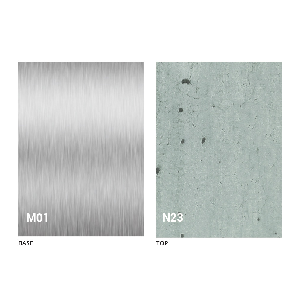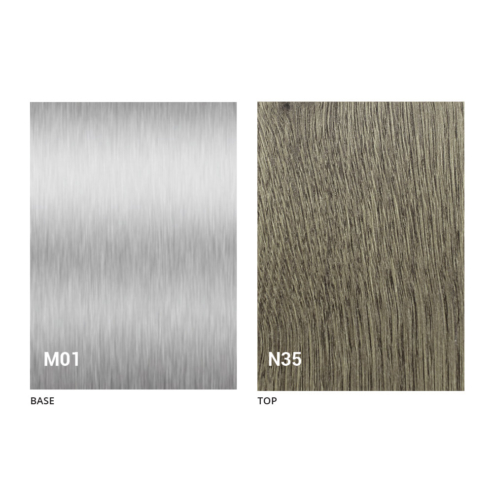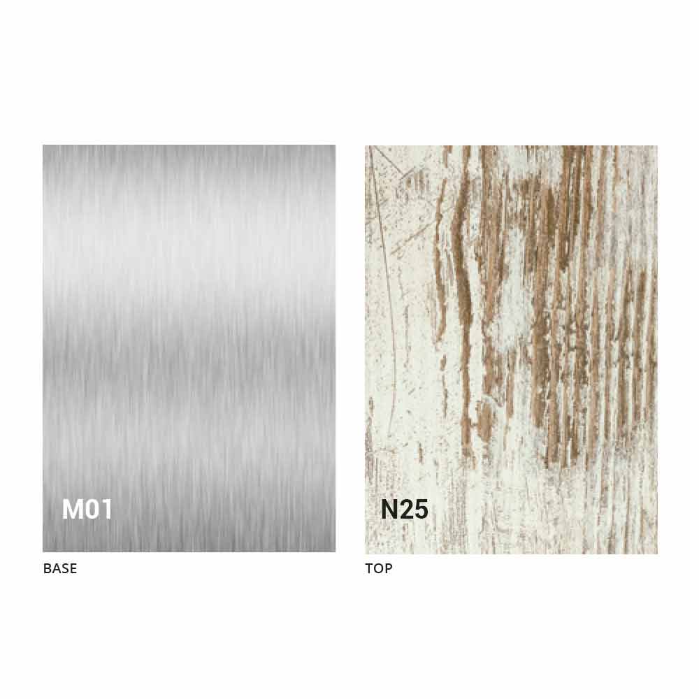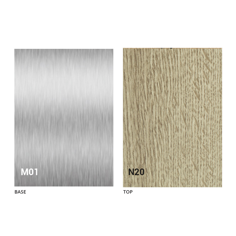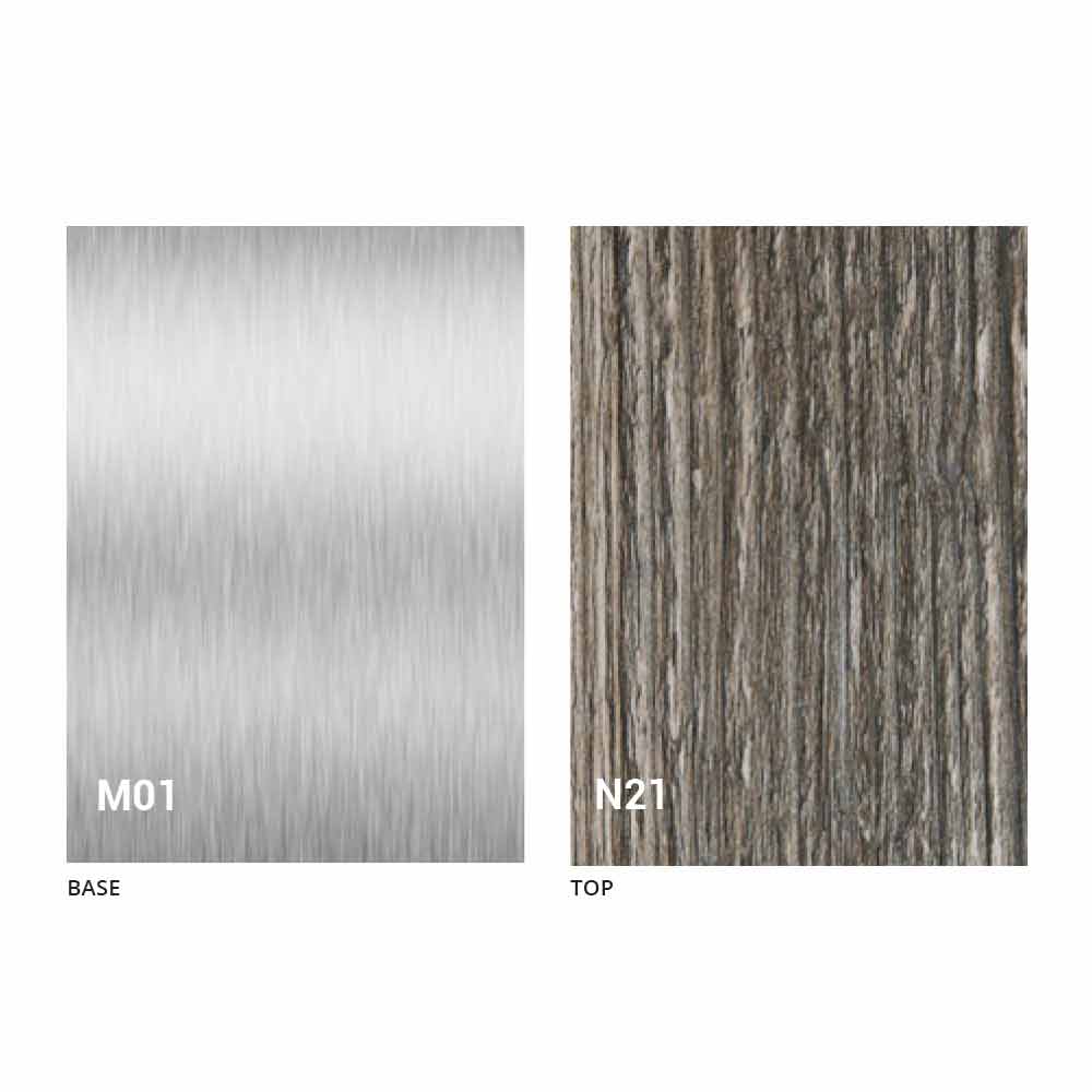 Tischplatte aus aschgrauem, harzbeschichtetem Holz;