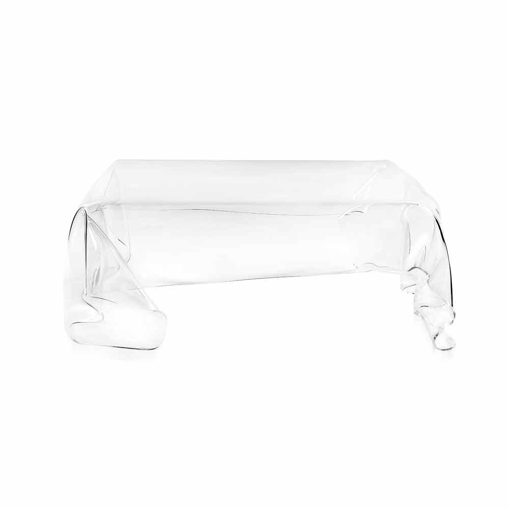 Moderner Beistelltisch aus transparentem Plexiglas drapiert Asien Jeder drapierte Asiatisch ist ein Unikat, ein modernes Kunstwerk. Eine Platte aus reinem 100% reinem Polymer aus transparentem PMMA-Plexiglas wird bei hohen Temperaturen von Hand drapiert, um einen einzigartigen und unwiederholbaren Tisch zu schaffen. Die gebaute Struktur ist völlig selbsttragend. Plexiglas ist stoßfest, nicht verformbar, unveränderbar und wärmeisolierend. Die Helligkeit und Helligkeit werden über die Zeit konstant und unverändert beibehalten. Das PMMA Plexiglas aus reinem Polymer ist ungiftig, hypoallergen, geruchlos und antibakteriell. 100% recycelbar. Die Dimensionen können aufgrund der Kunstfertigkeit des Kunstwerks kleine Abweichungen erfahren. Entworfen, entworfen und hergestellt in Italien, mit italienischen Materialien.