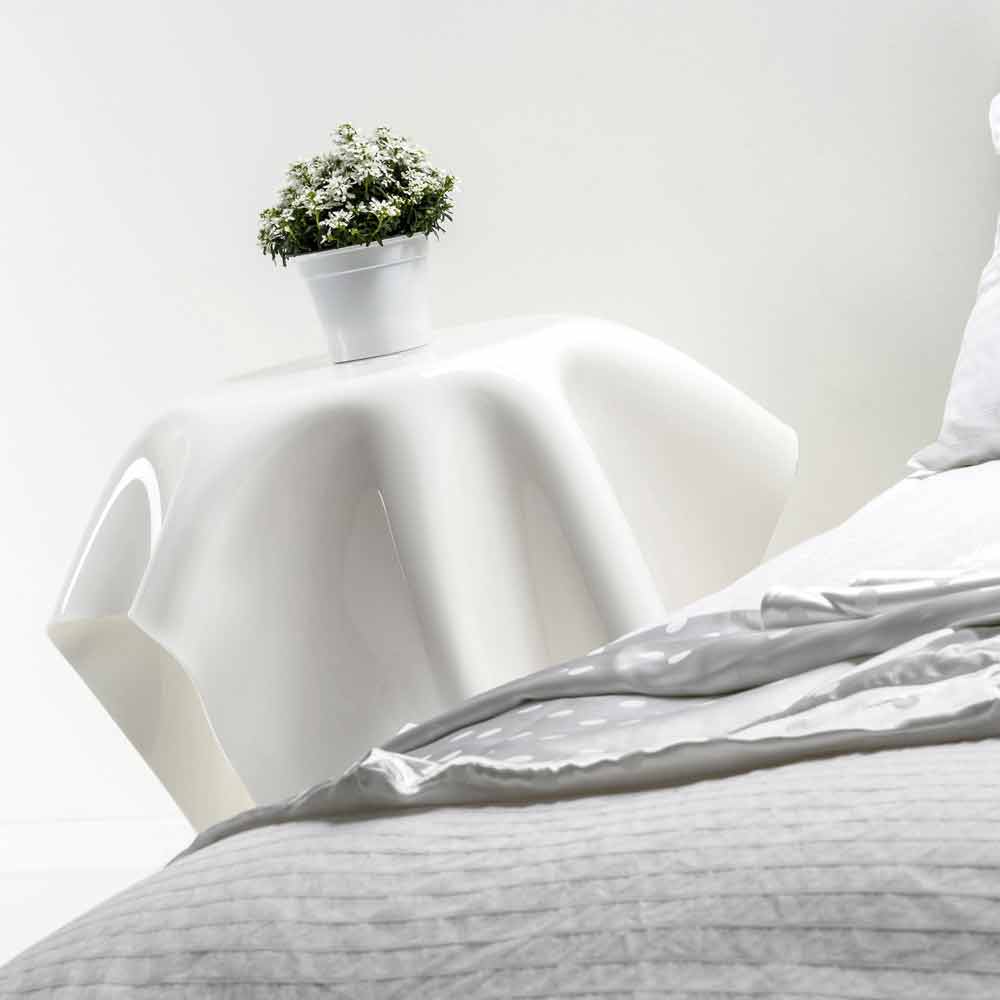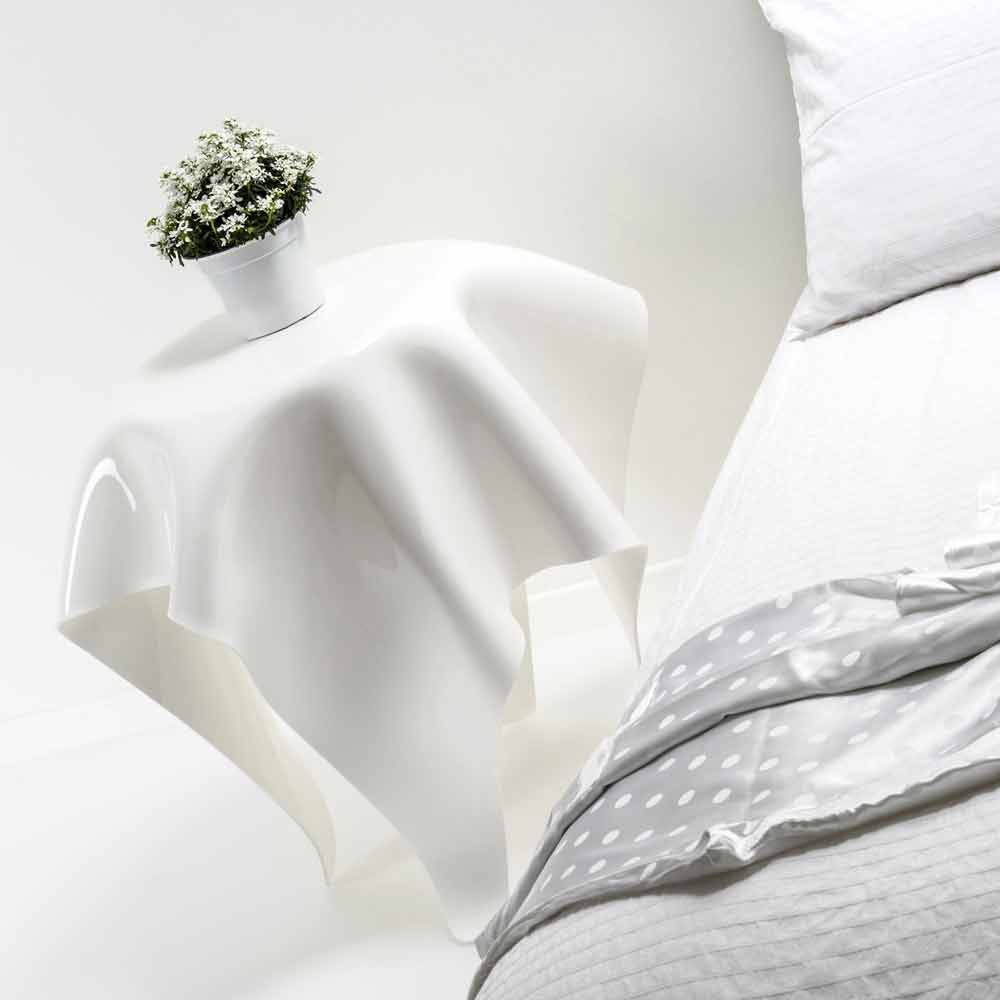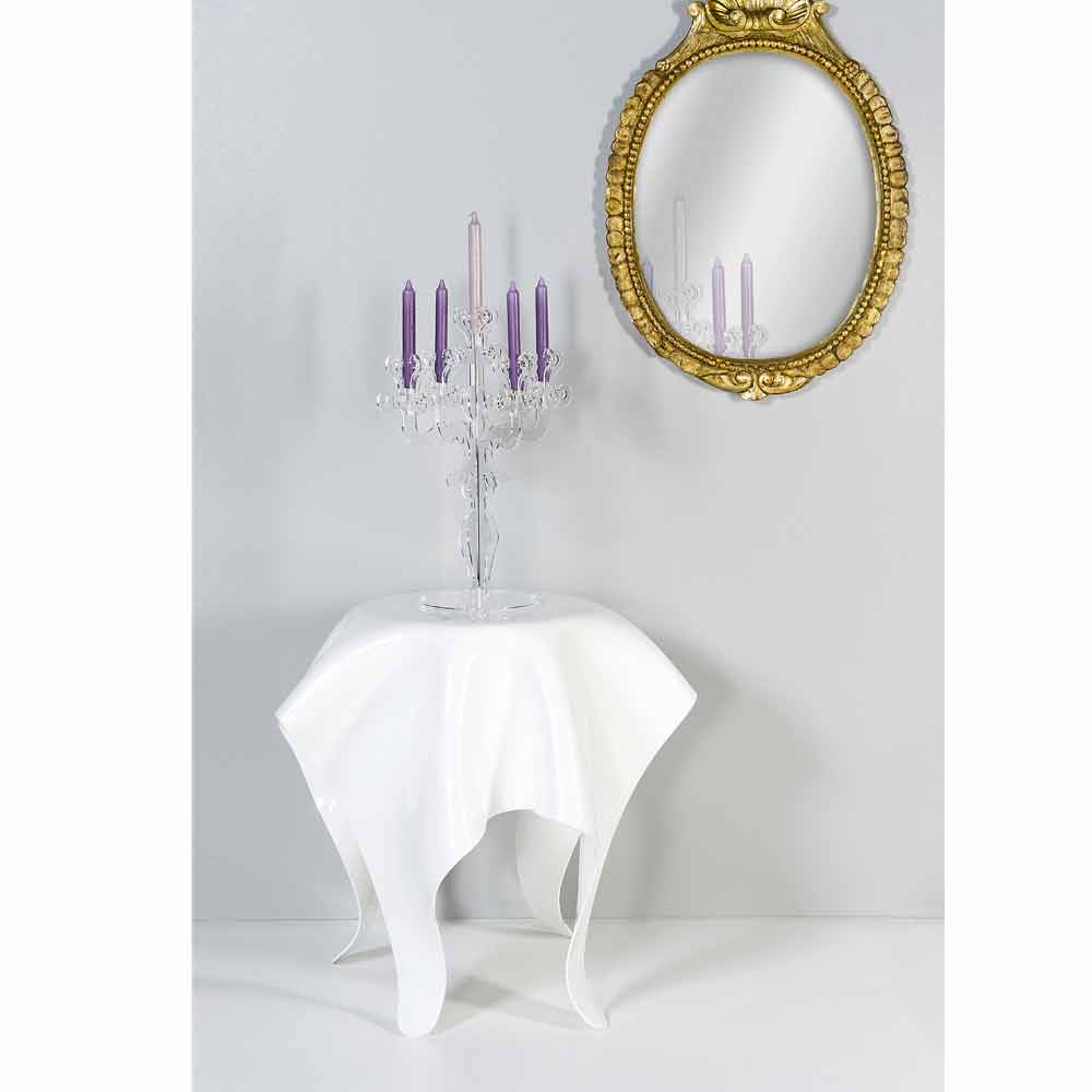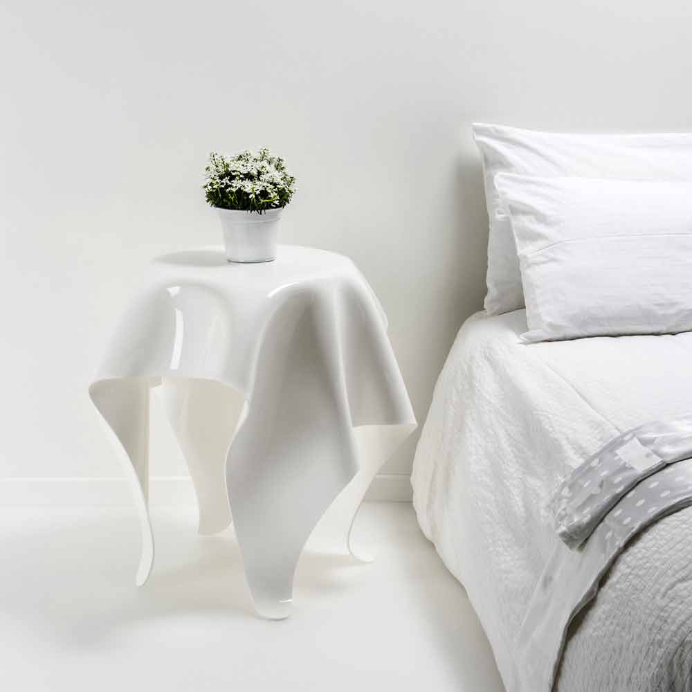 Moderner Beistelltisch aus weißem Plexiglas Otto, made in Italy Der drapierte Otto Tisch ist ein Unikat, ein Werk moderner Kunst. Eine Platte aus reinem 100% reinem Polymer aus weißem PMMA-Plexiglas wird bei hohen Temperaturen von Hand drapiert, um einen einzigartigen und unwiederholbaren Tisch zu schaffen. Die gebaute Struktur ist völlig selbsttragend. Plexiglas ist stoßfest, nicht verformbar, unveränderbar und wärmeisolierend. Die Helligkeit und Helligkeit werden über die Zeit konstant und unverändert beibehalten. Das PMMA Plexiglas aus reinem Polymer ist ungiftig, hypoallergen, geruchlos und antibakteriell. 100% recycelbar. Die Dimensionen können aufgrund der Kunstfertigkeit des Kunstwerks kleine Abweichungen erfahren. Entworfen, entworfen und hergestellt in Italien, mit italienischen Materialien.