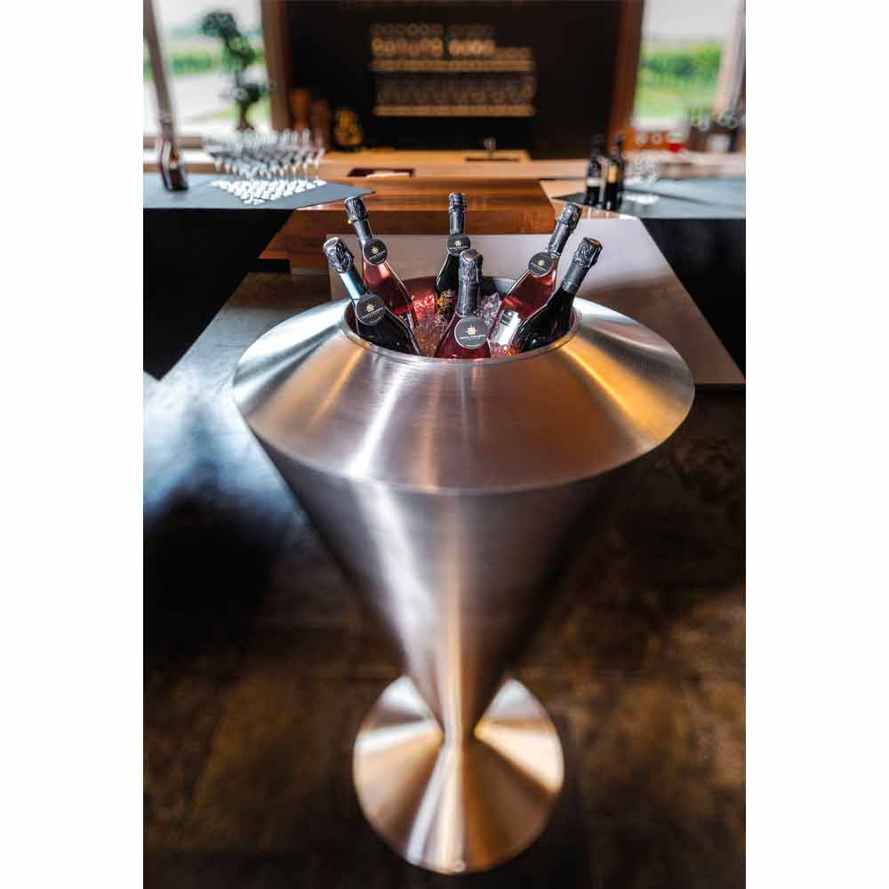 Moderne Bodenfrappeuse aus Edelstahl mit hochwertigem Made in Italy Flaschenregal.
