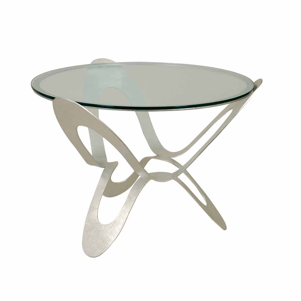 Runder Couchtisch handgefertigt in Italien aus Eisen in Blattgold oder Blattsilber und Glas.