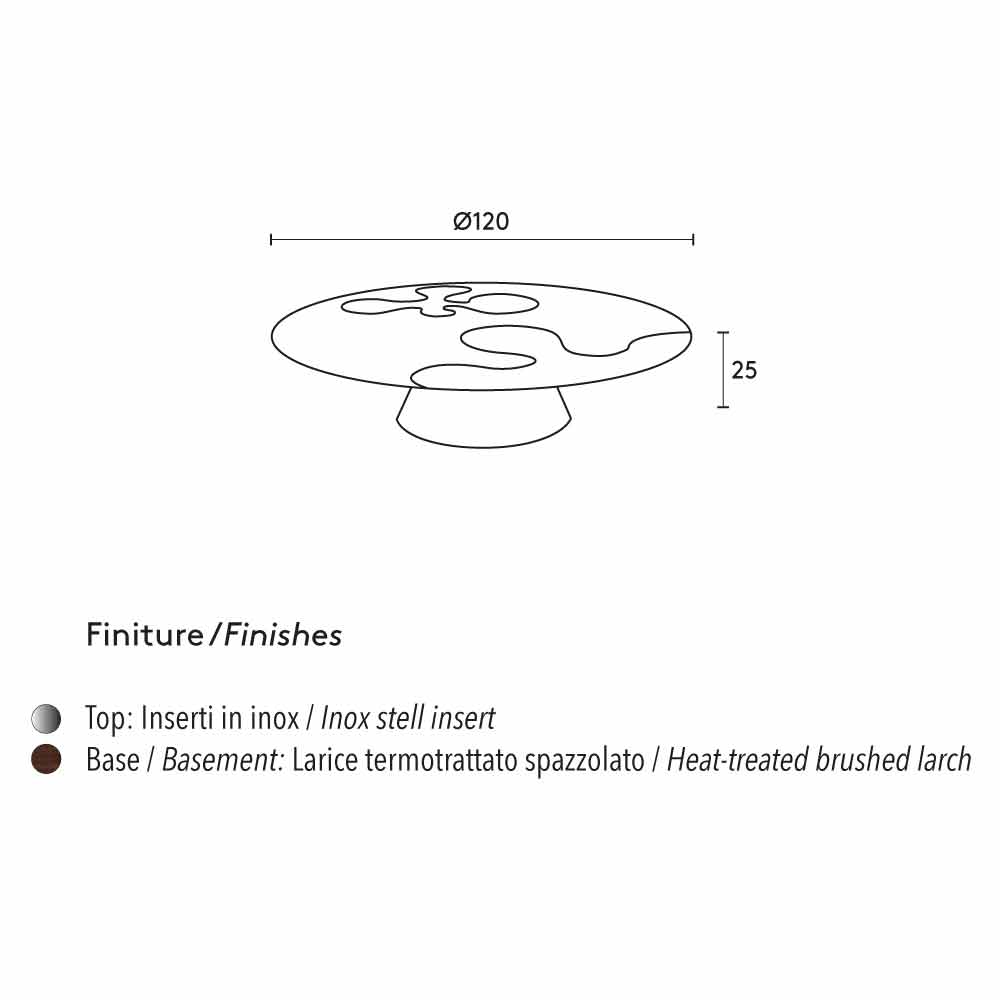runder Couchtisch aus hochwertigen Lärchenholz mit abgeflachten Stahlflächen- made in Italy