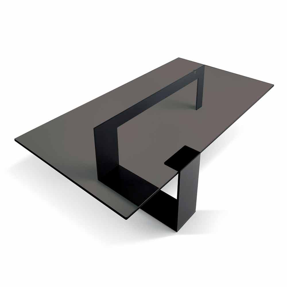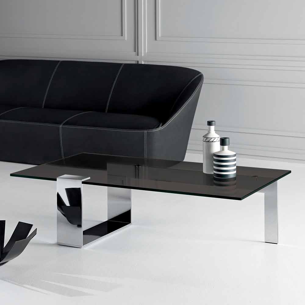 Rechteckiger Couchtisch im modernen Design mit Rauchglasplatte und Metallbasis, hergestellt in Italien.