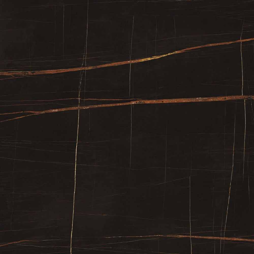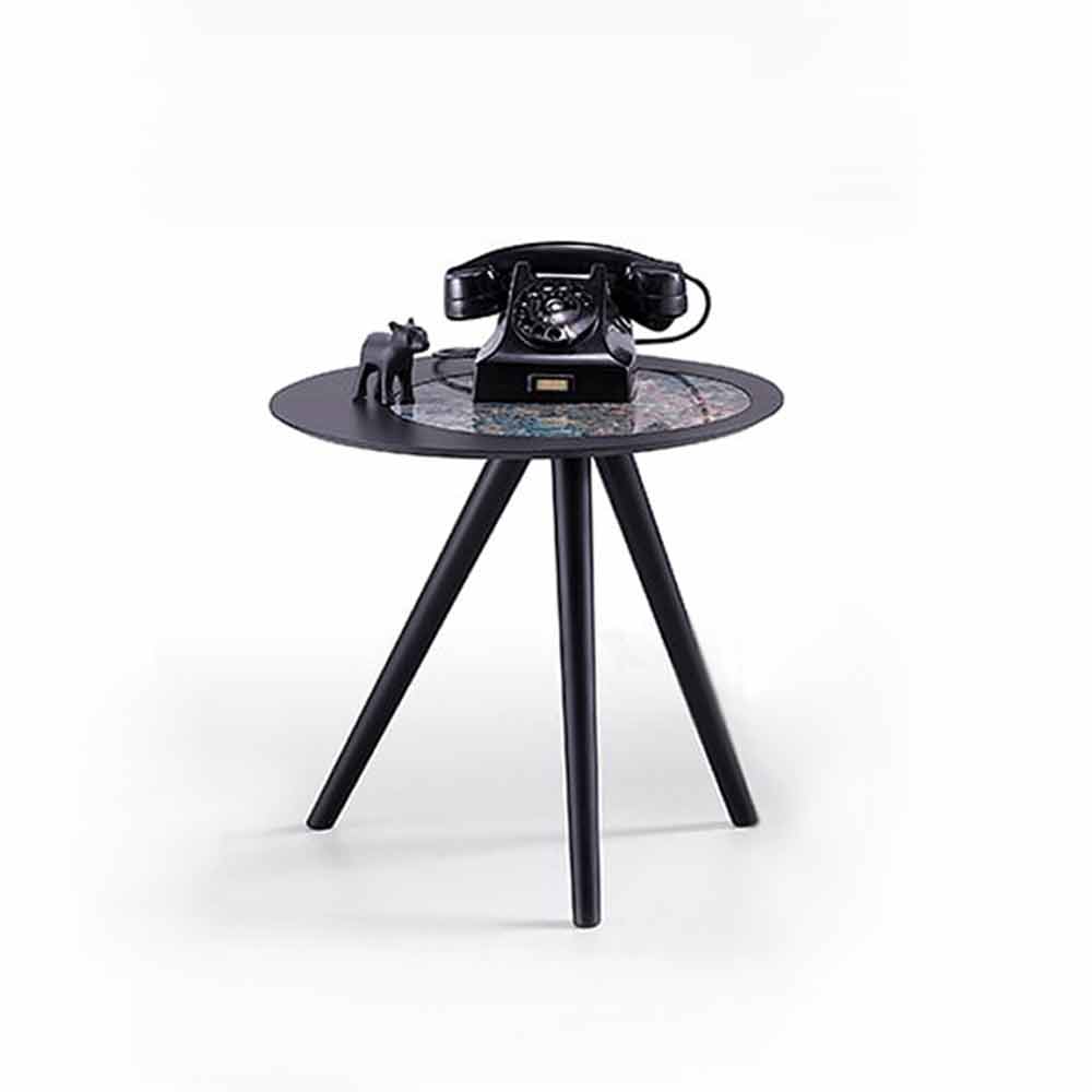Couchtisch made in Italy mit schwarz grau lackierter Buchenholzstruktur und runder Platte aus 1,2 cm dickem glänzendem oder undurchsichtigem Steinzeugmarmor .